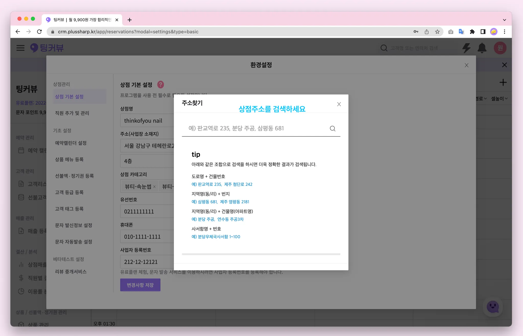 (주소 입력폼을 클릭하면 상점주소를 검색할 수 있어요.)
