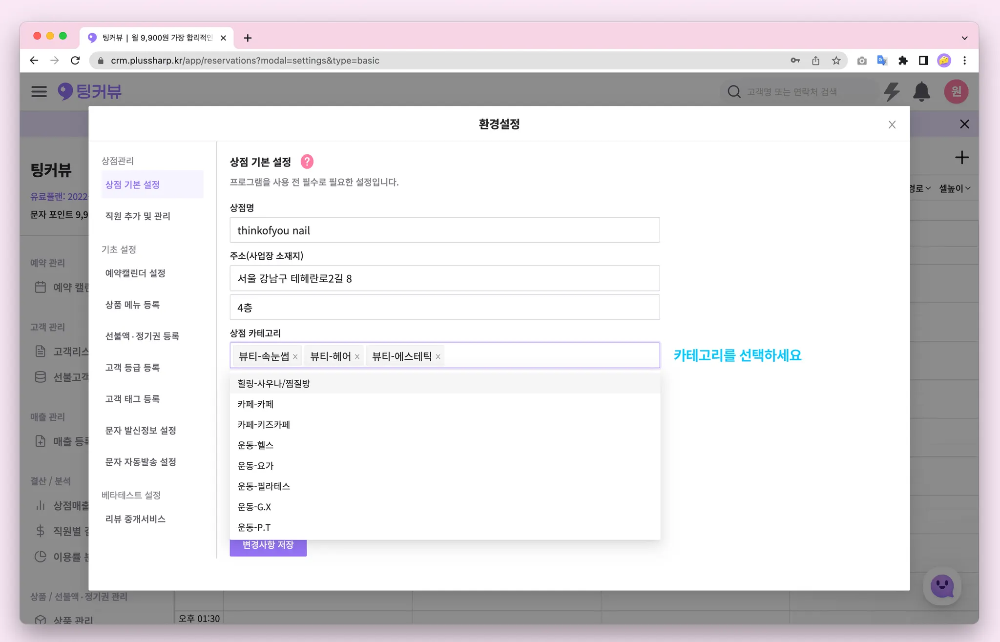 마지막으로 변경사항 저장 버튼을 클릭하면 상점카테고리 변경완료!