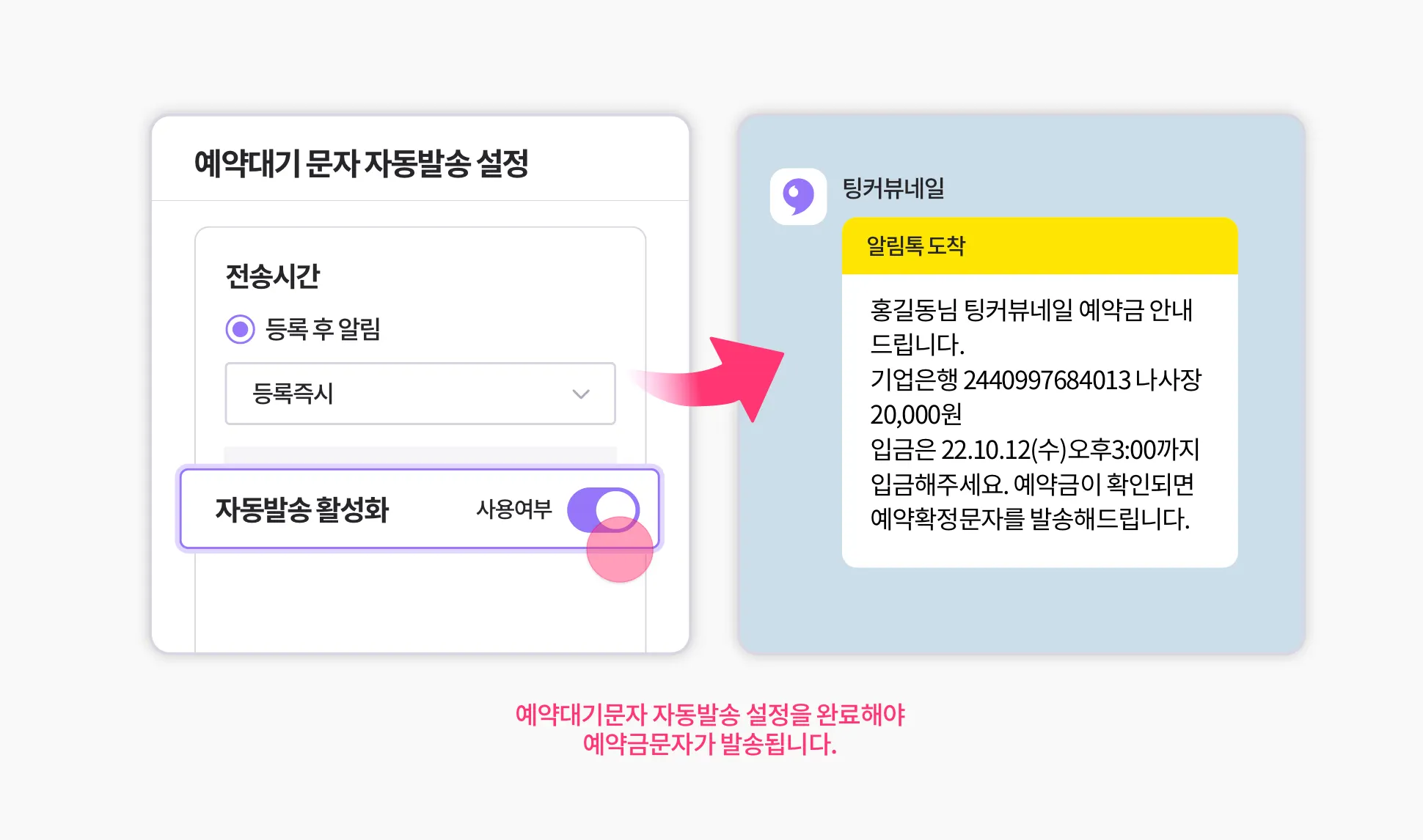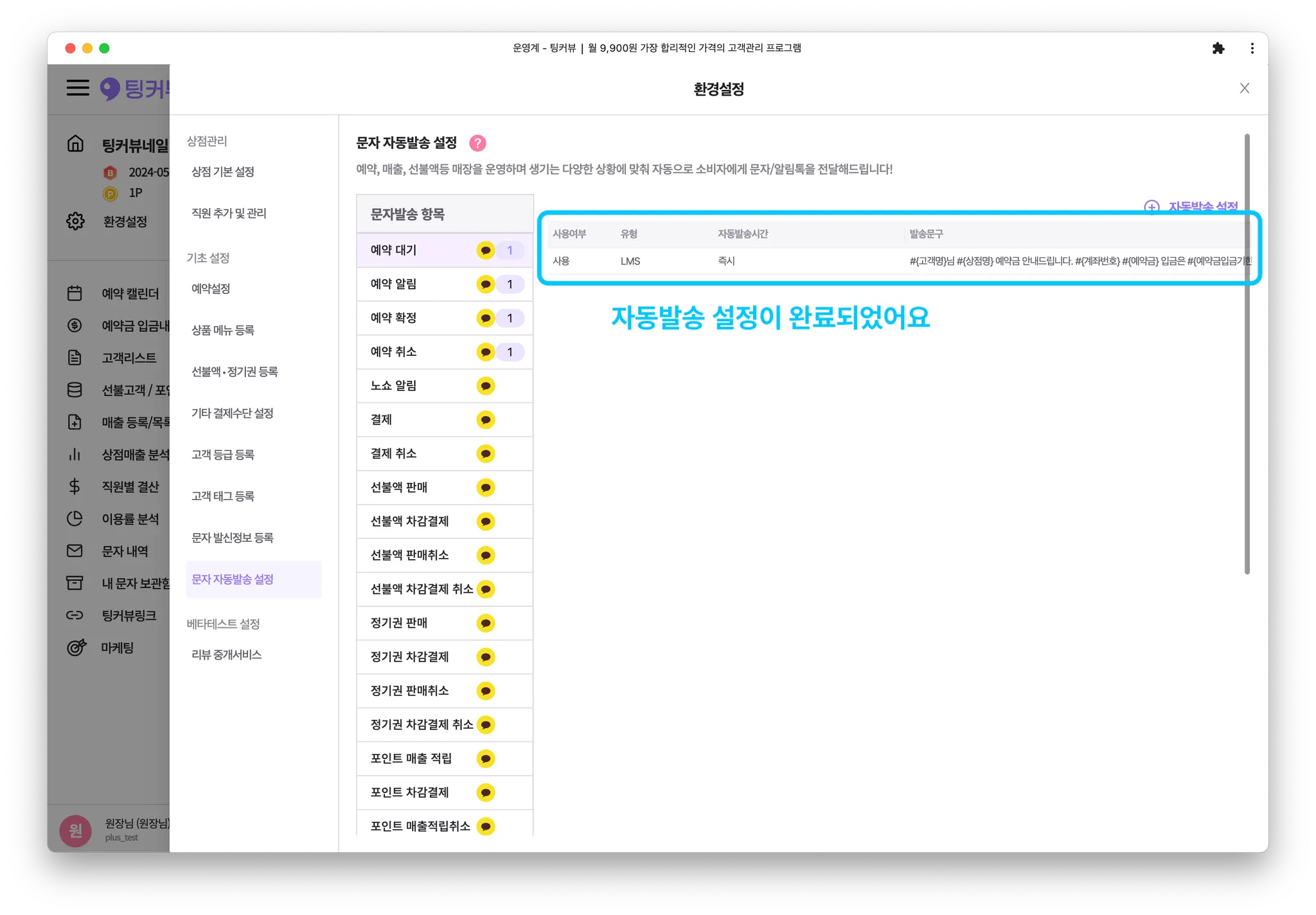 예약대기 문자자동발송 설정이 완료되었어요!