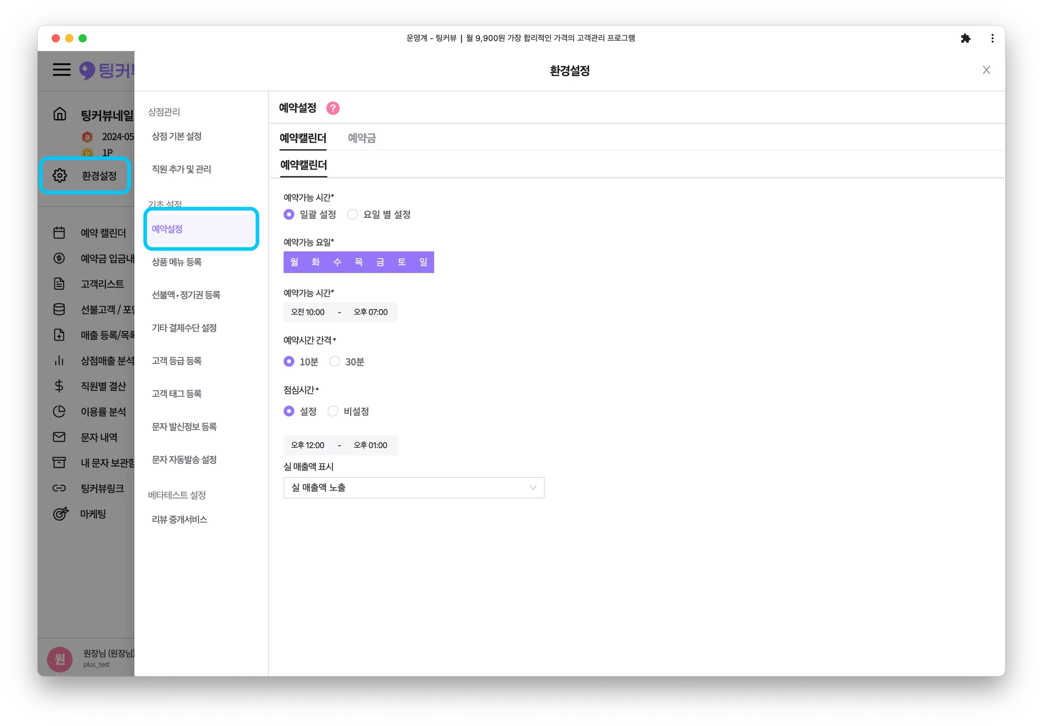 예약상태관련 설정