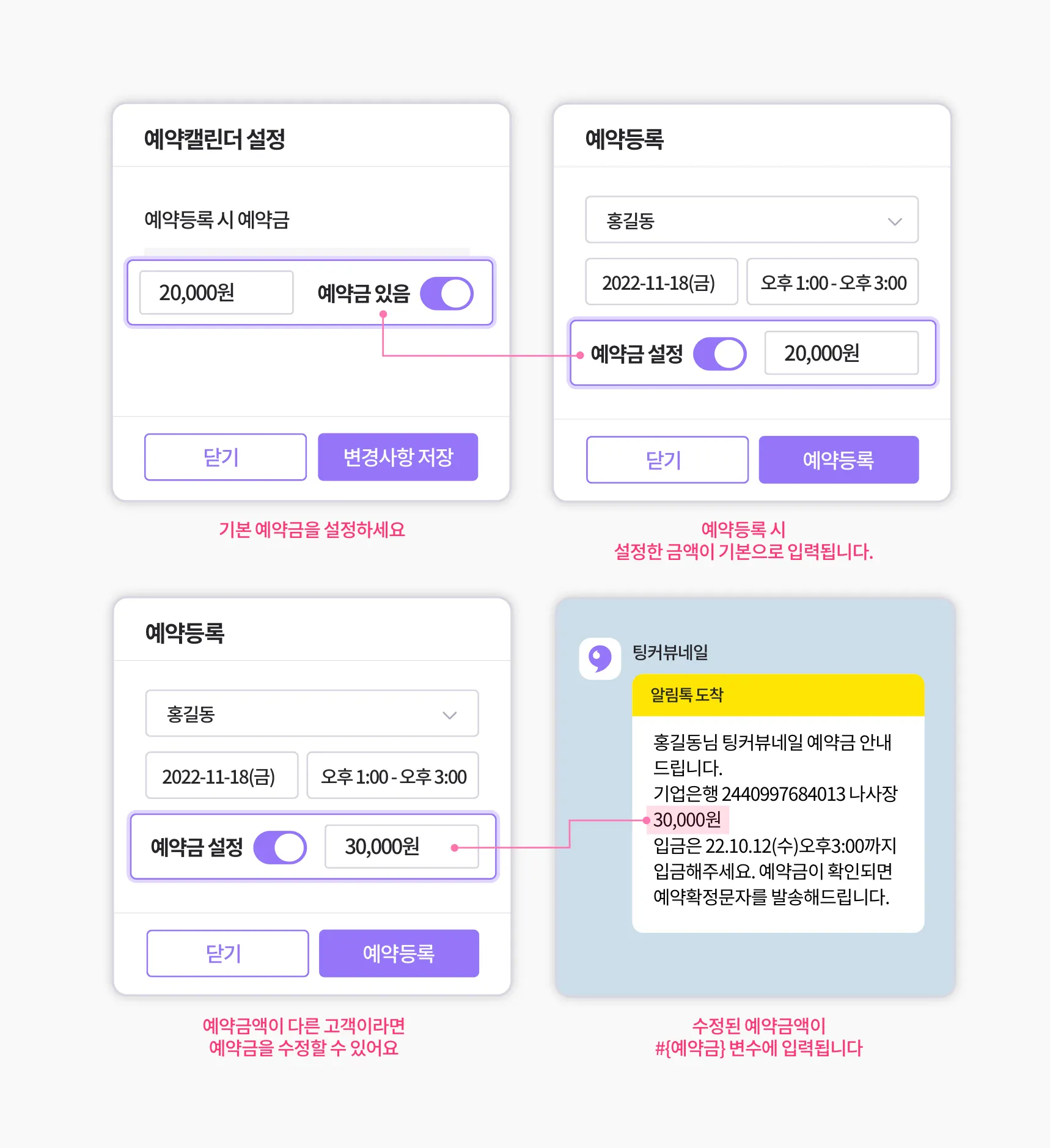 예약금액이 다른 손님일때만 예약금만 수정하면 되니, 예약금관리가 더 간편해진답니다