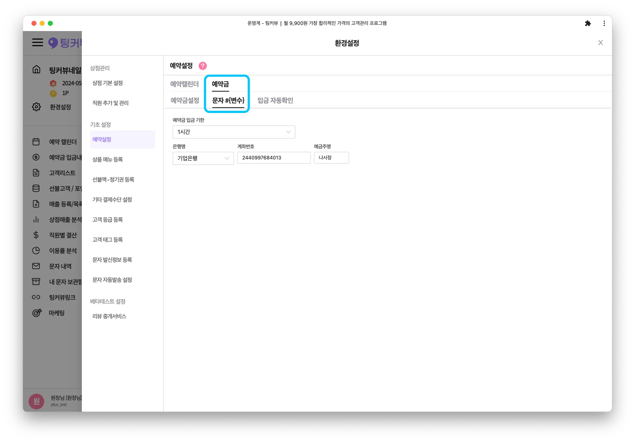 예약금이 있는 상점의 경우 고객에게 예약금문자를 안내하게 되는데요