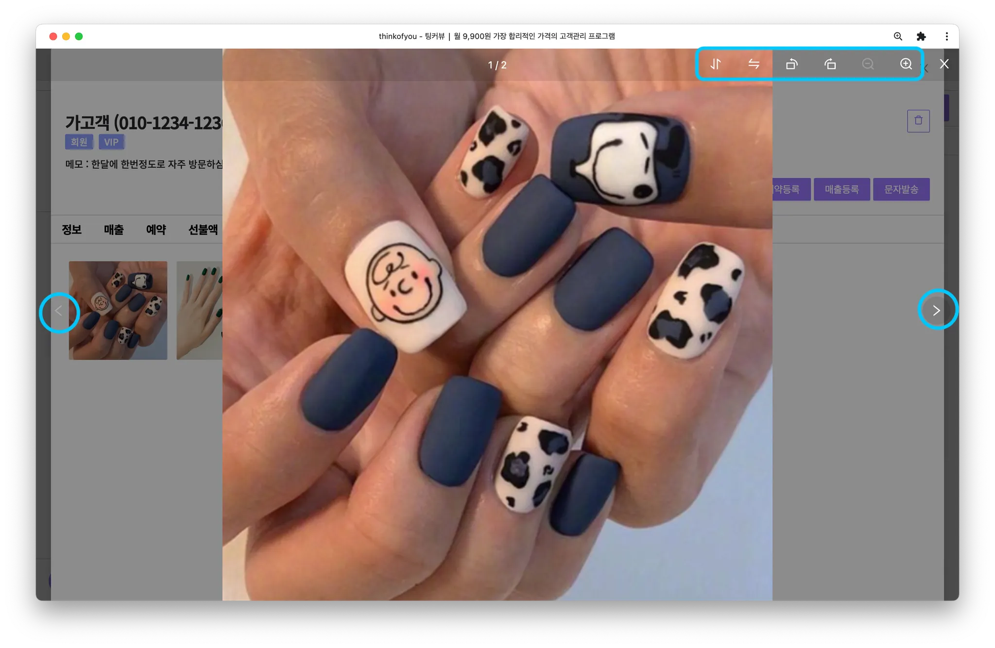 고객의 매출에 등록된 모든 시술사진을 확인할 수 있어요! (사진은 가장 최근에 등록한 사진이 상단에 위치합니다)