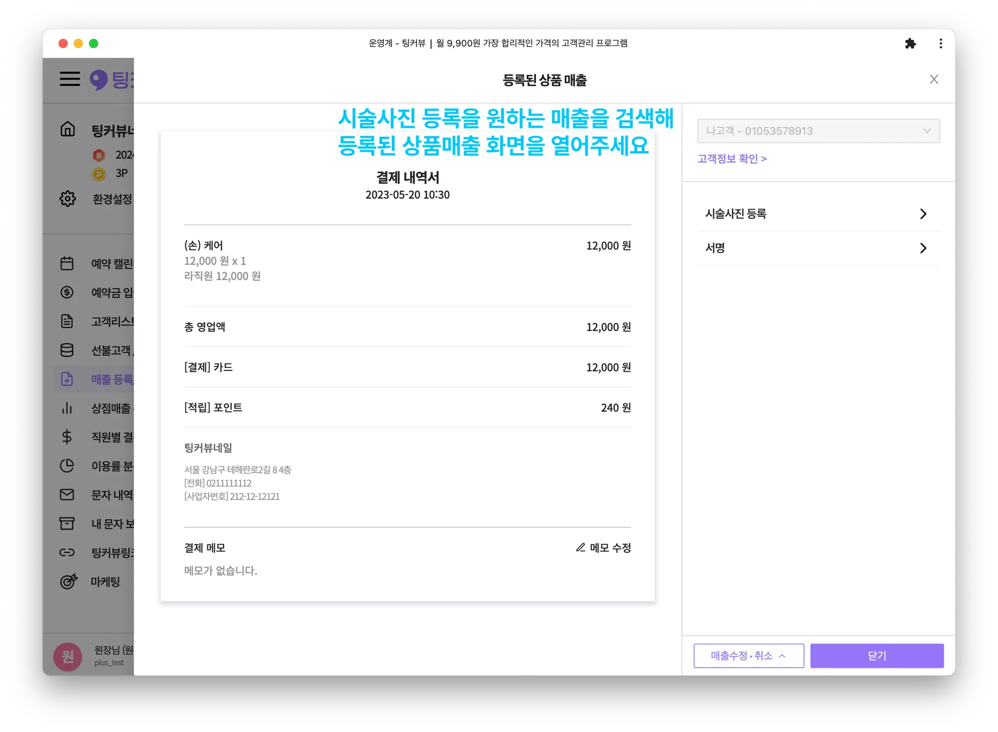 시술사진은 매출에 연결해 등록할 수 있어요!
