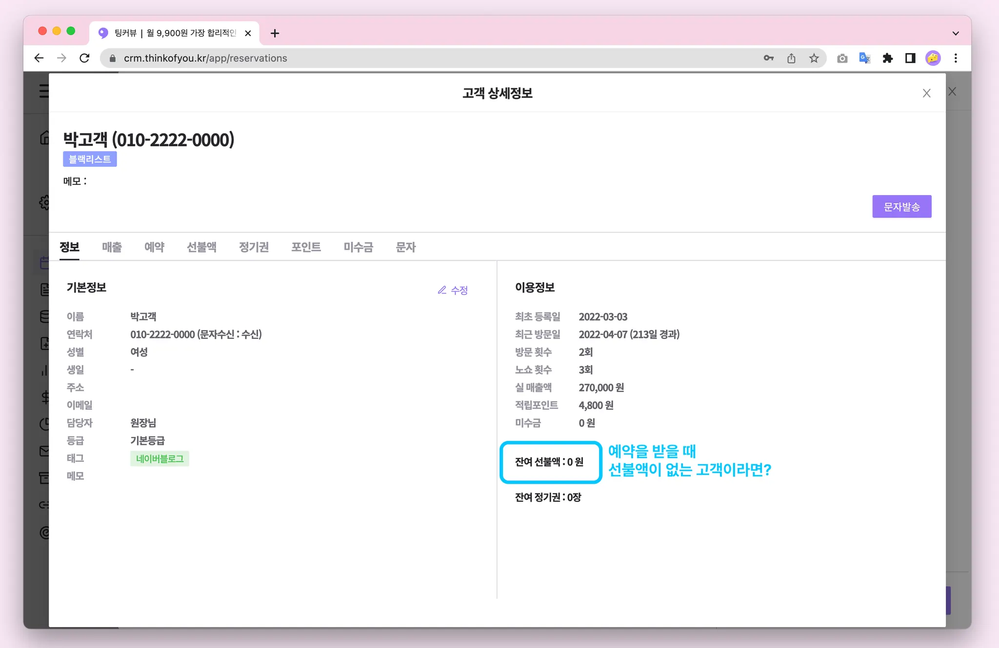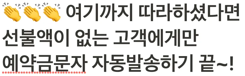 선불액이 없는 일부 고객에게만 예약금문자를 자동으로 발송하는 방법을 알려드릴게요!