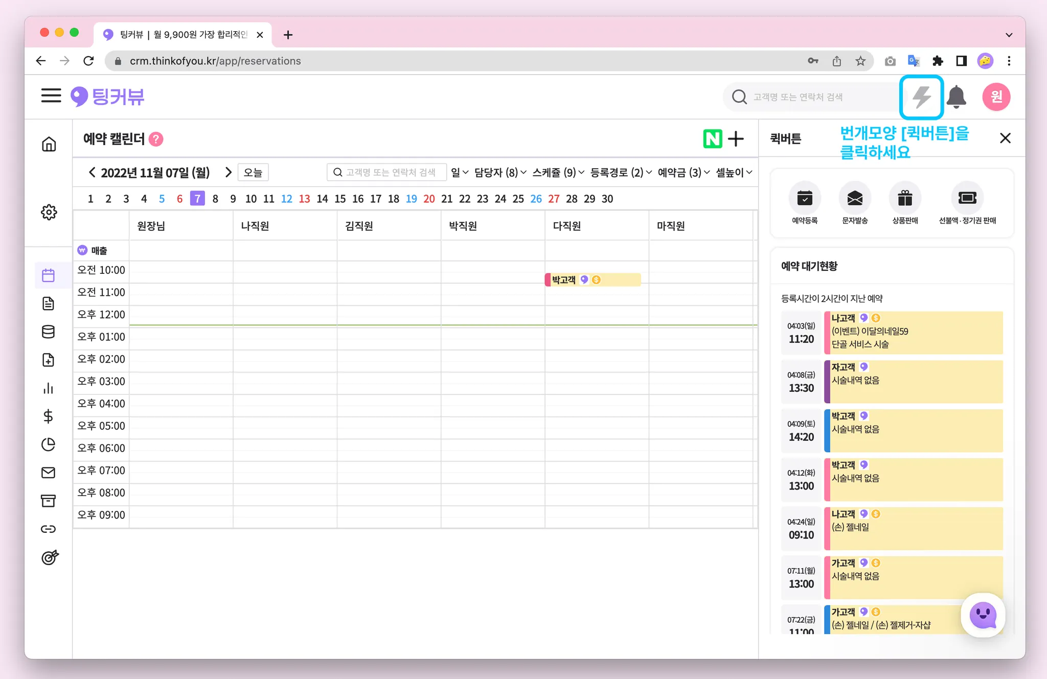 꿀팁! 예약대기현황 기능을 이용하면 예약금을 입금받아야하는 ‘예약대기’상태의 예약만 모아보고 관리할 수 있어요!