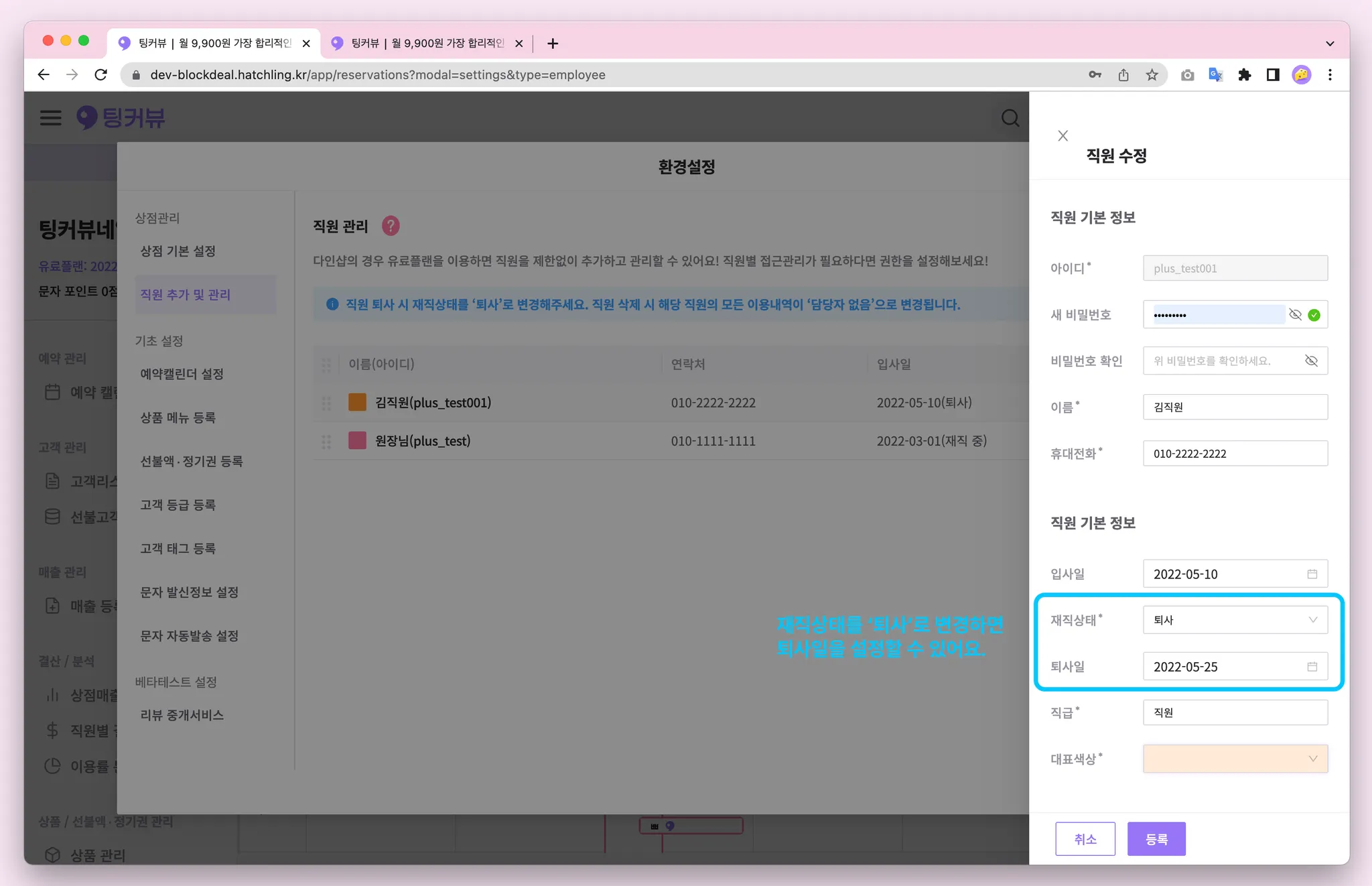 직원정보에 퇴사일 항목이 추가되었어요! 이제 재직상태를 ‘퇴사'로 변경하면 퇴사일을 기록할 수 있어요