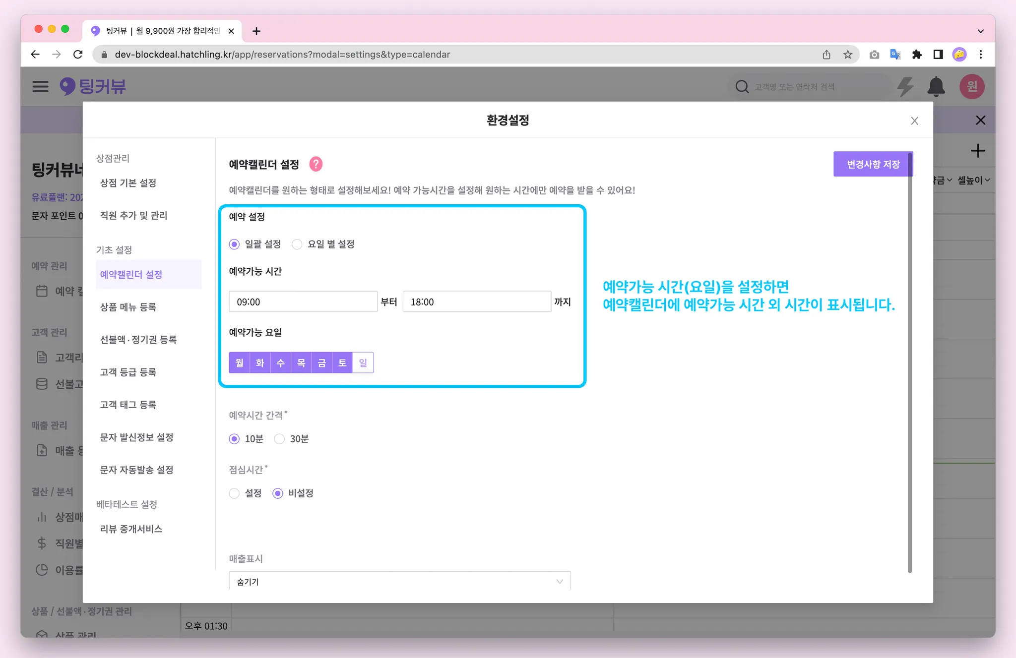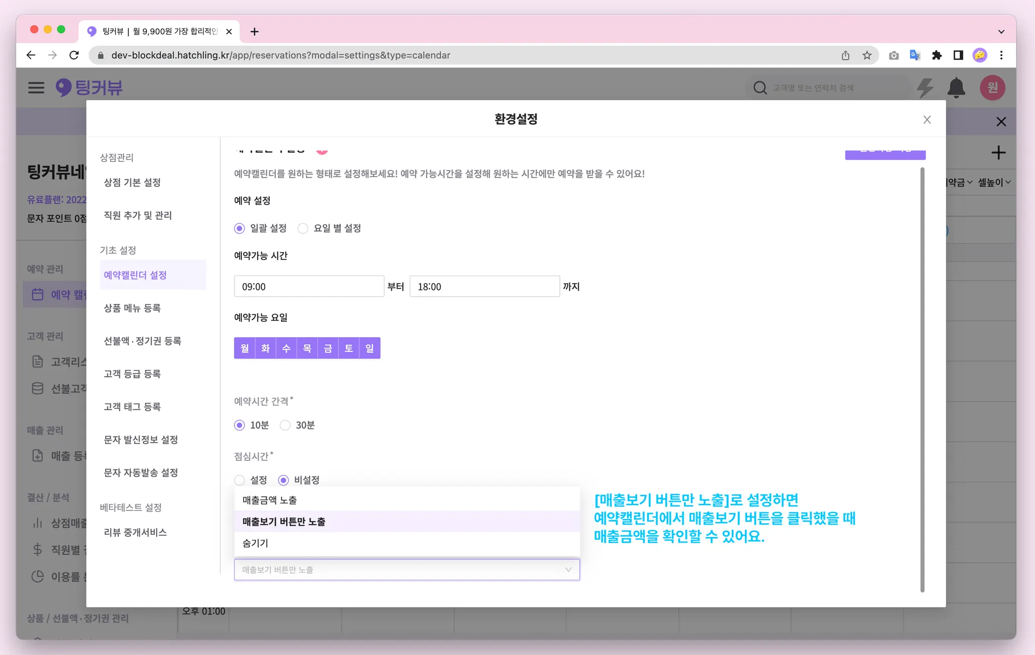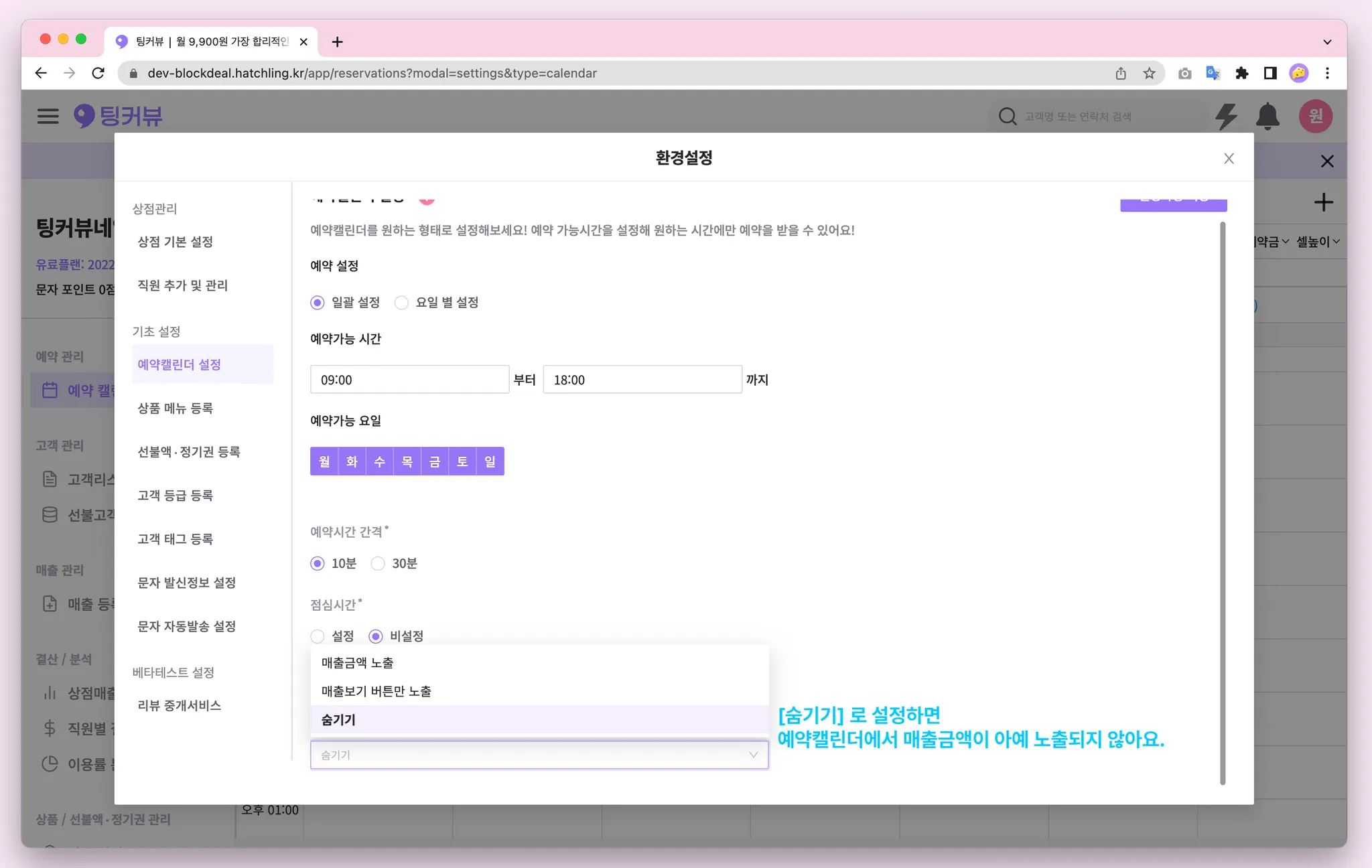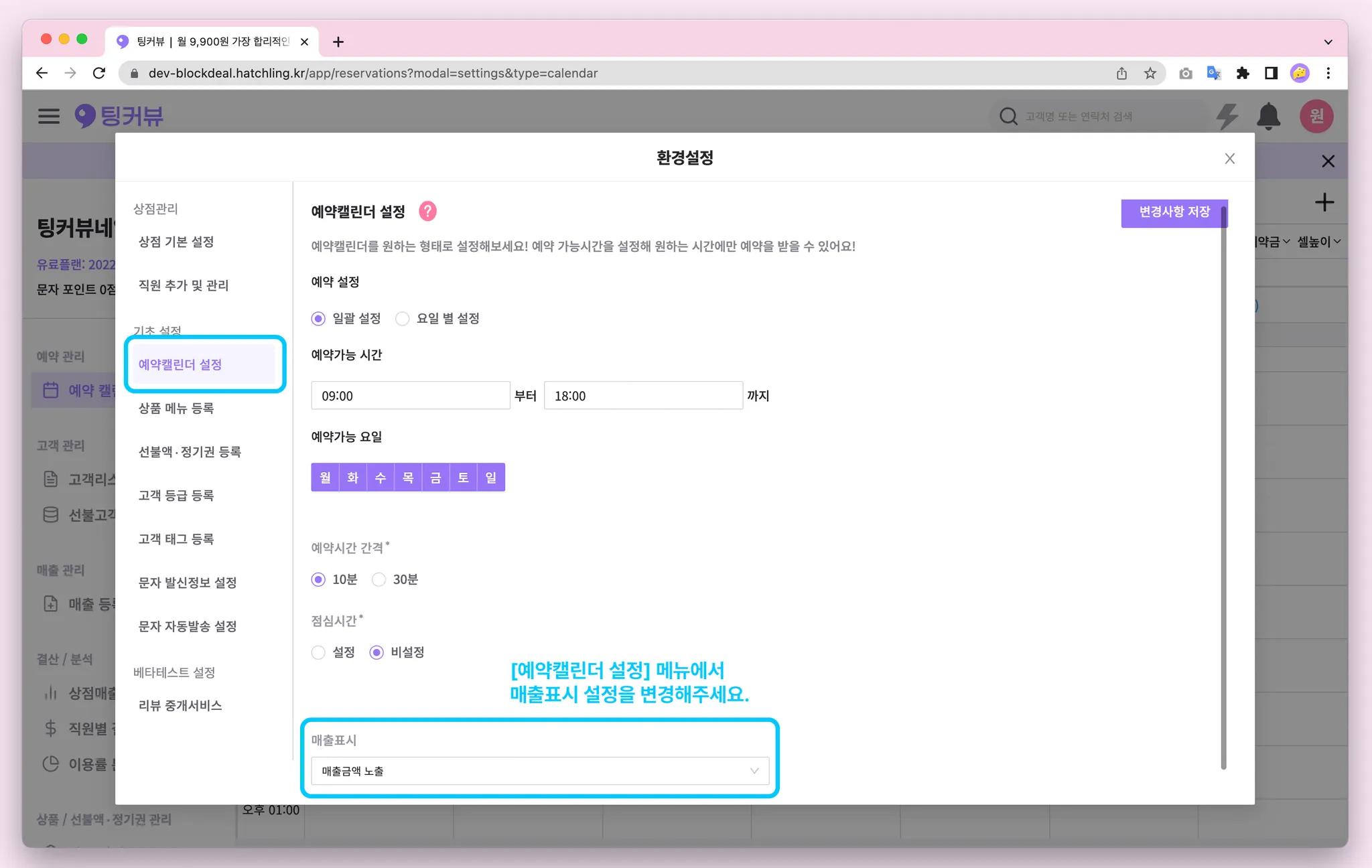 1-7. 예약캘린더 매출금액 노출설정