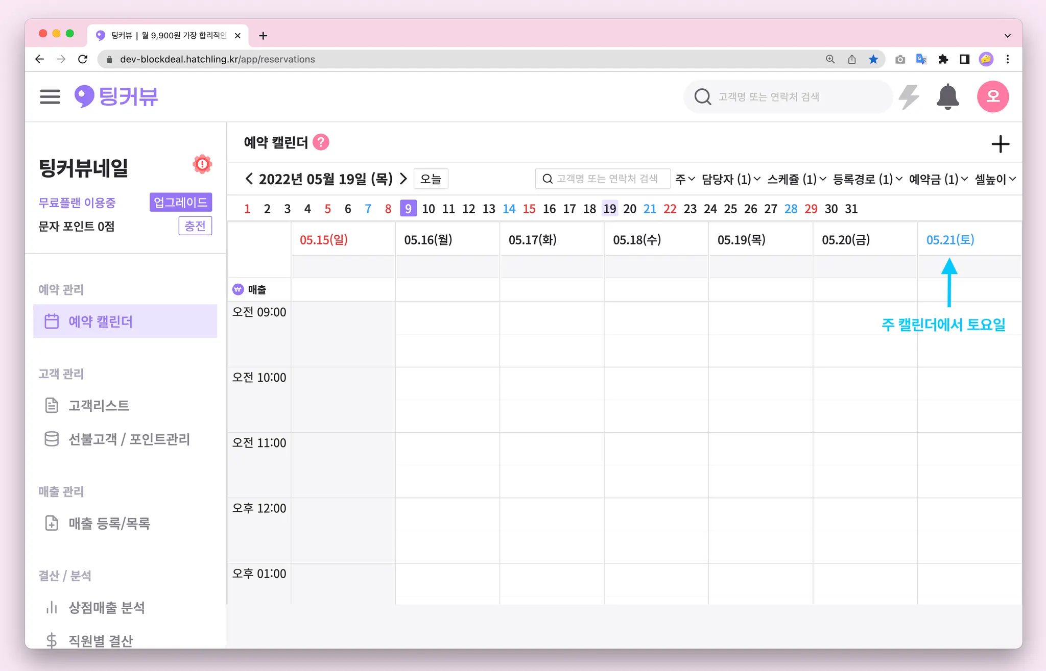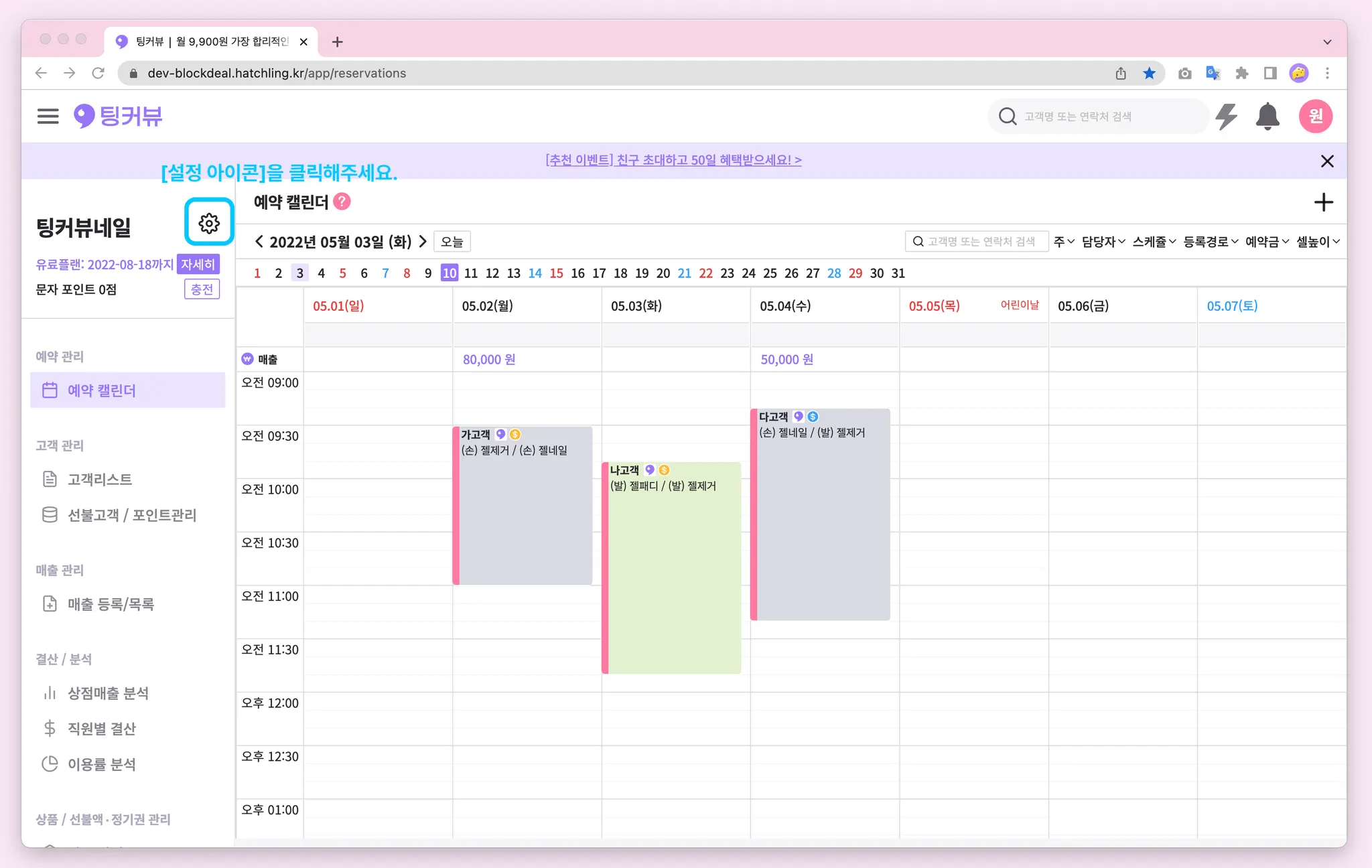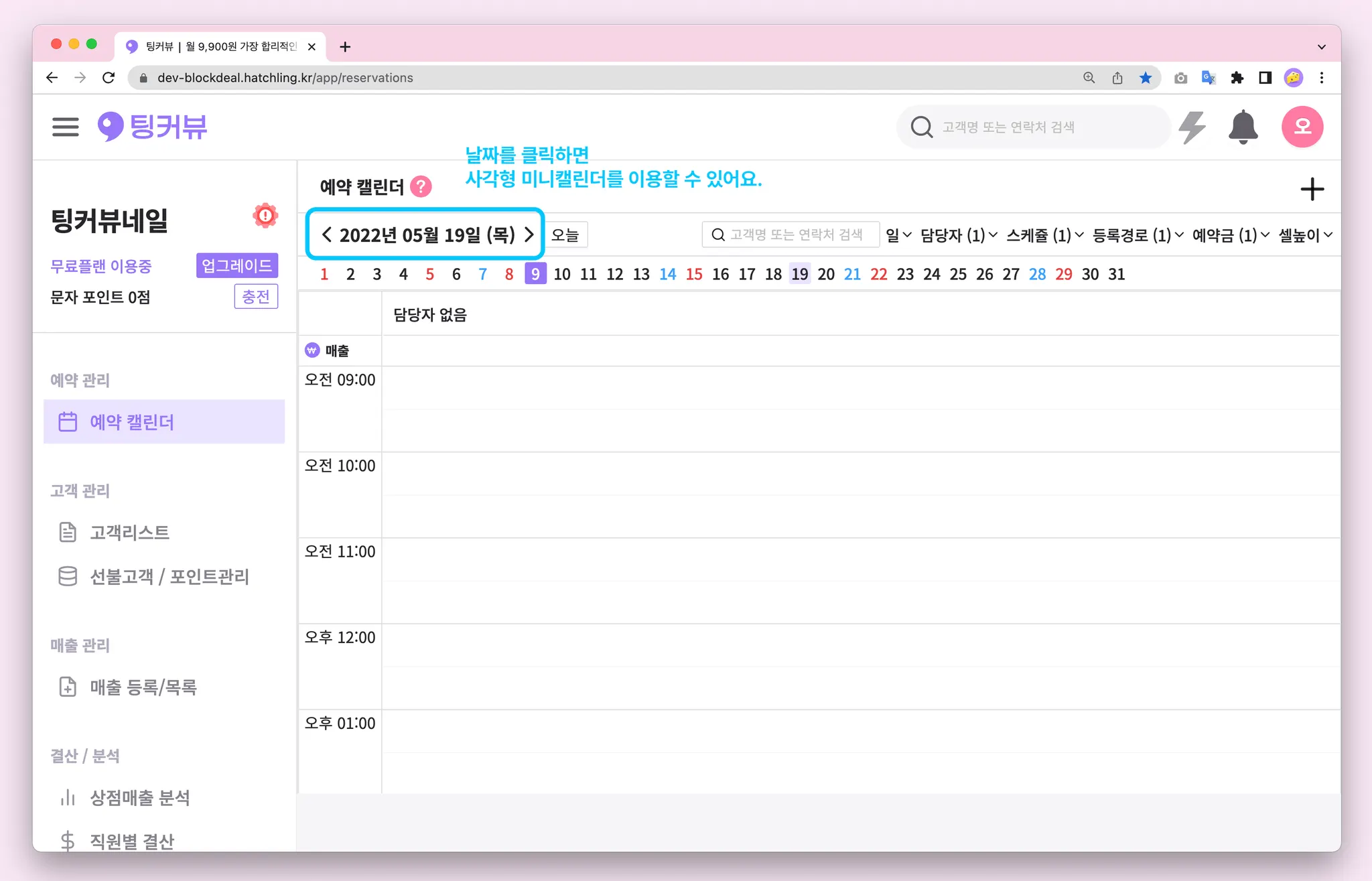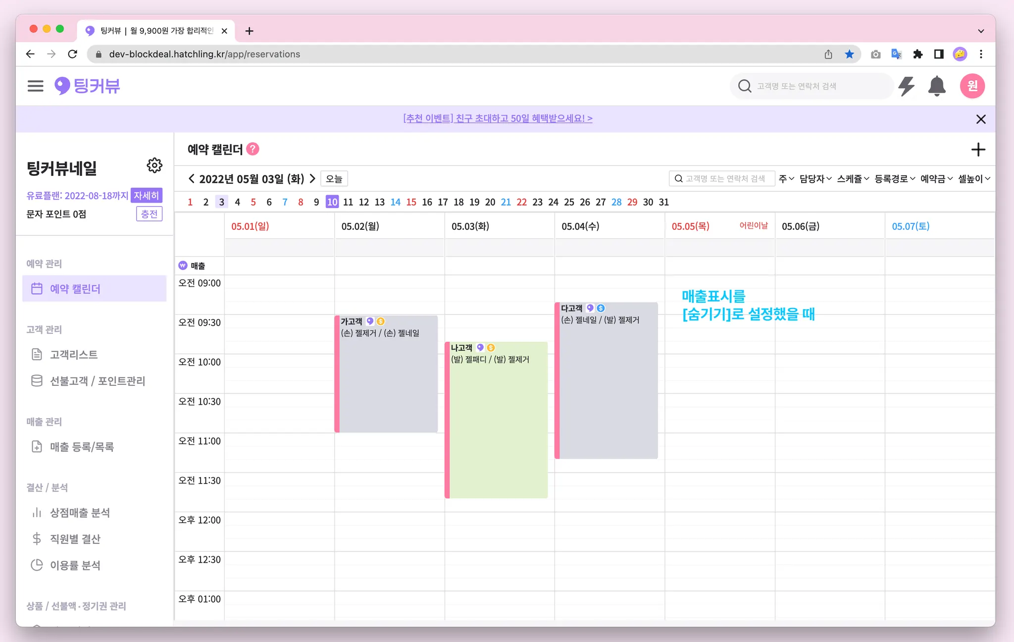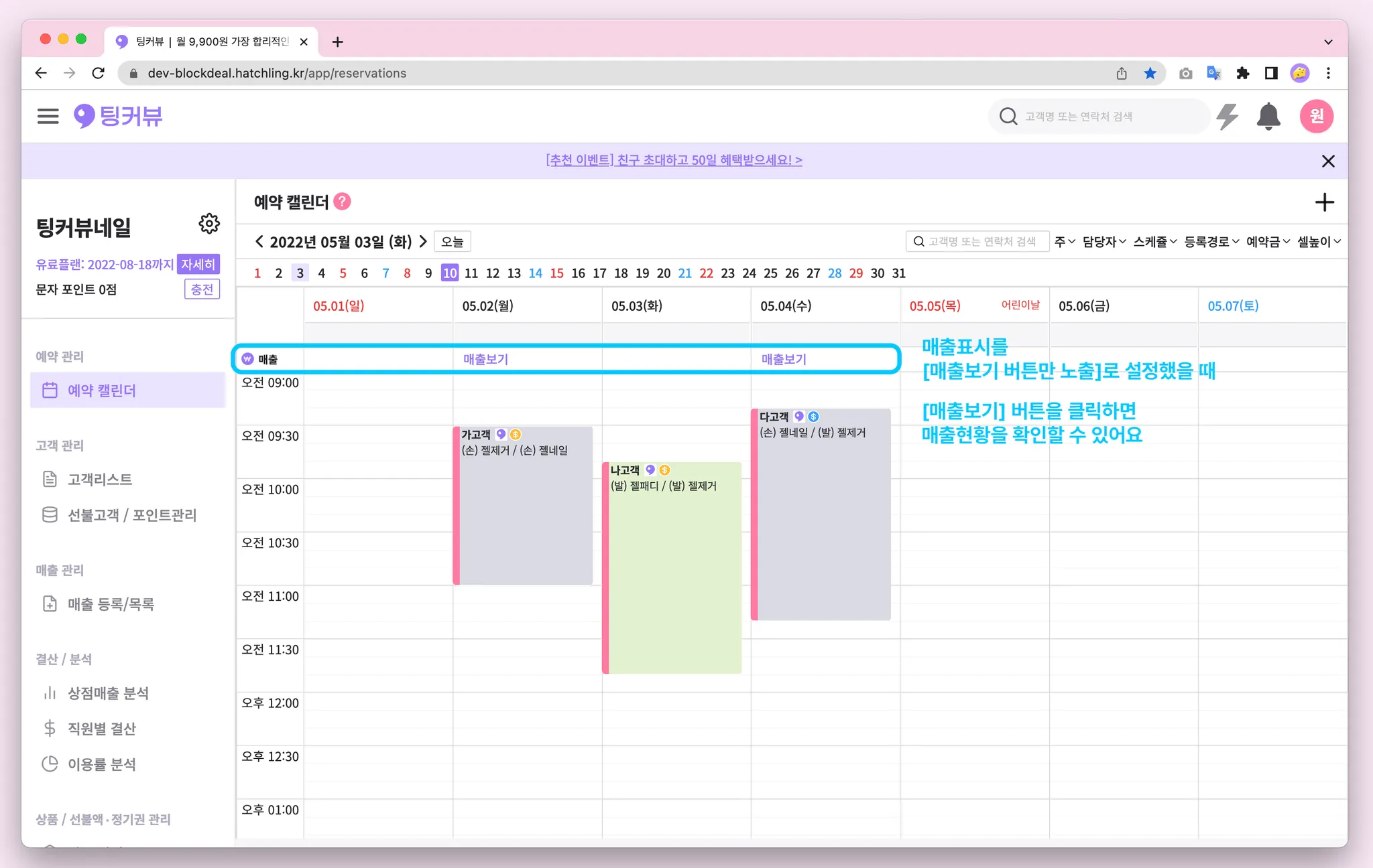 1-7. 예약캘린더 매출금액 노출설정