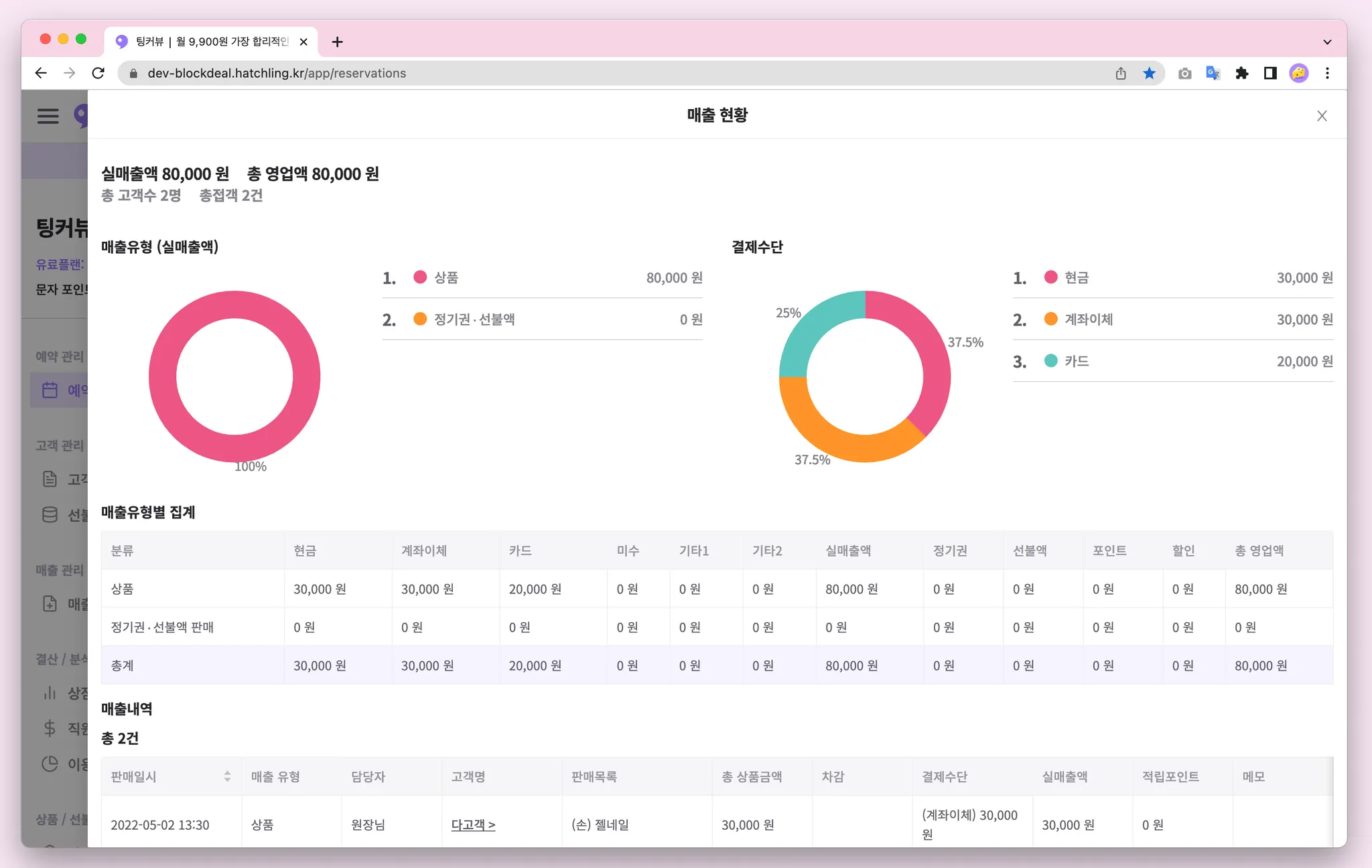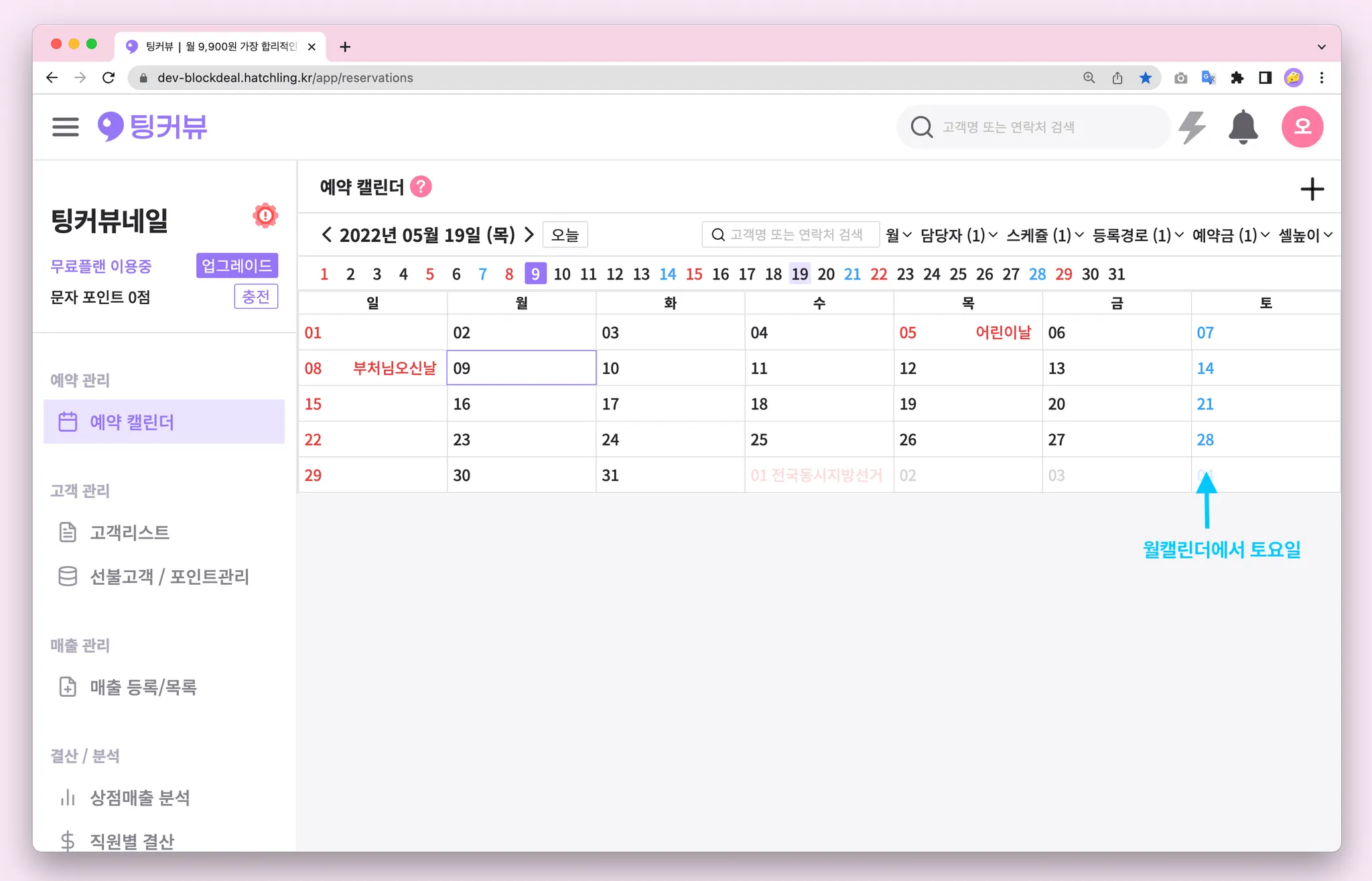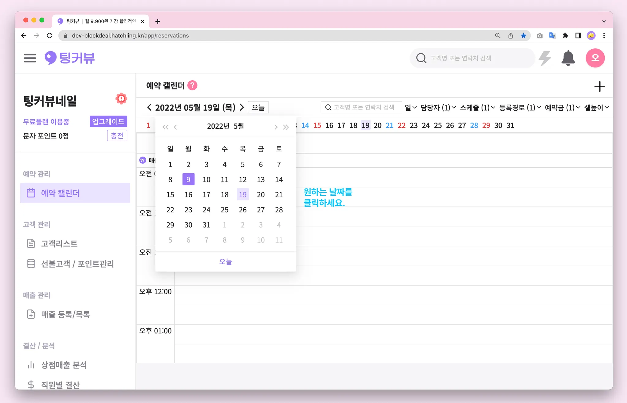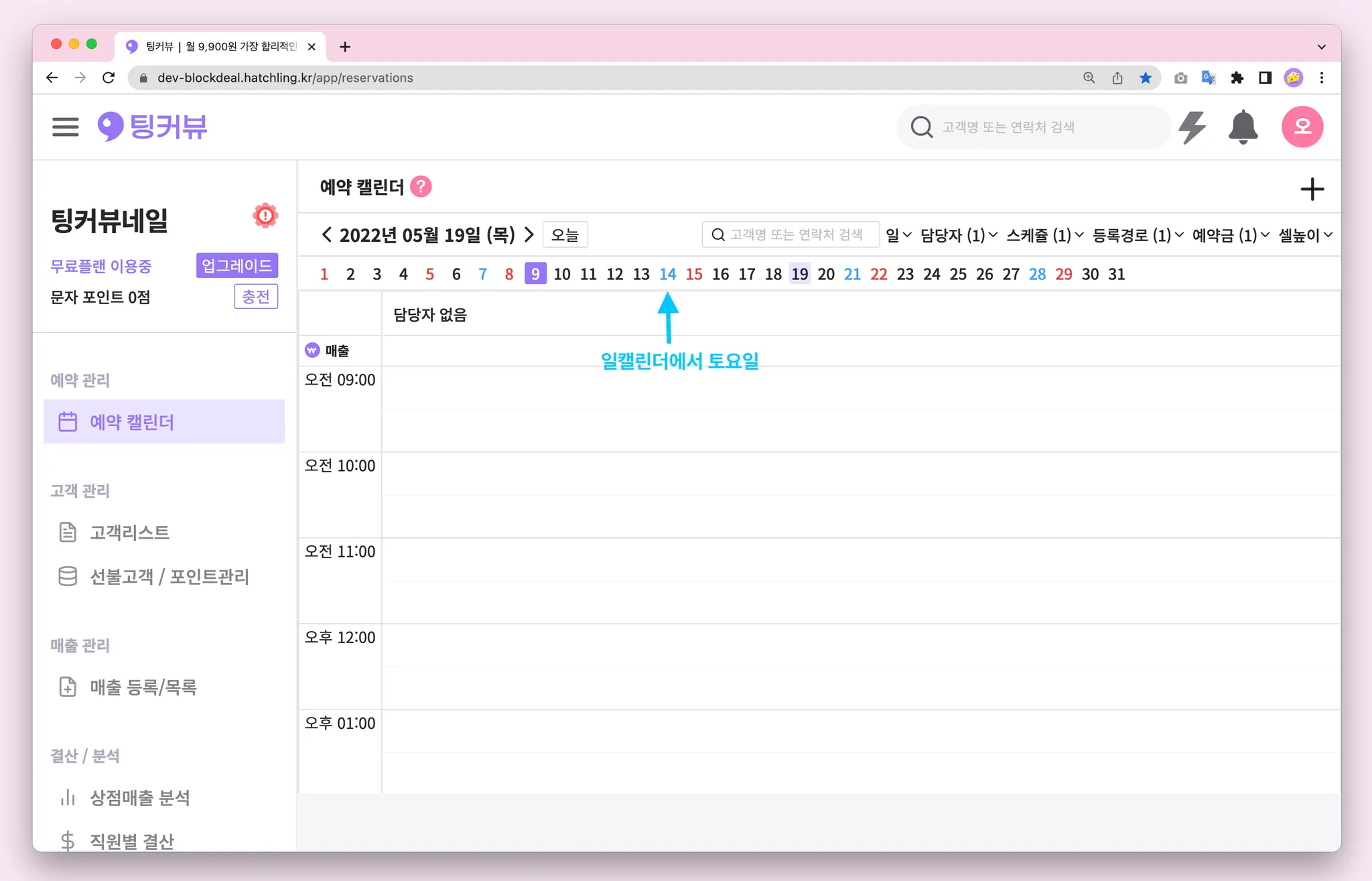 1-7. 예약캘린더 매출금액 노출설정