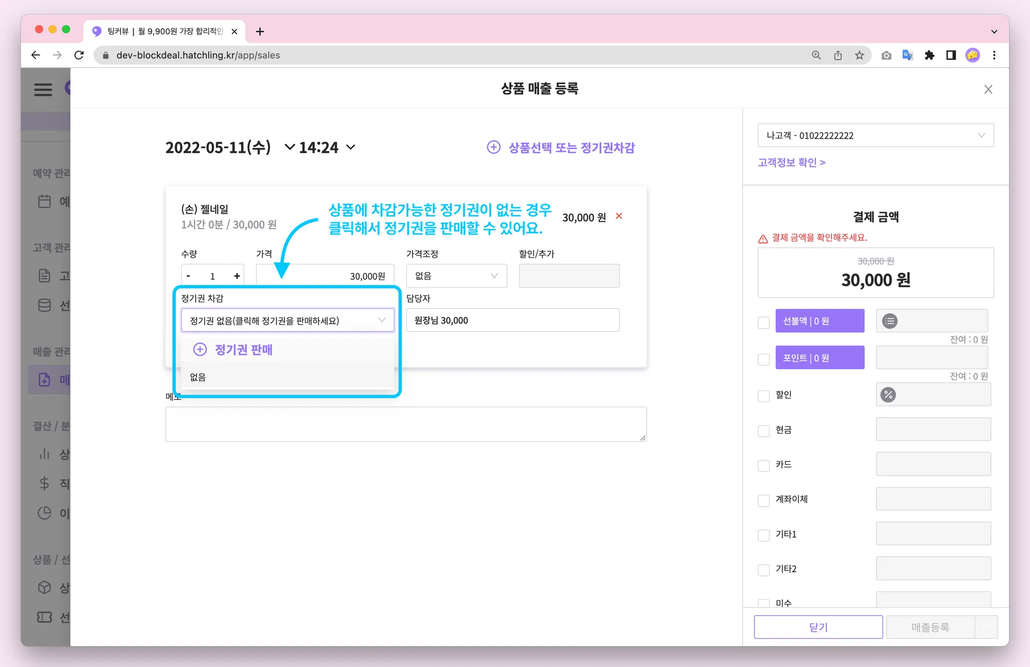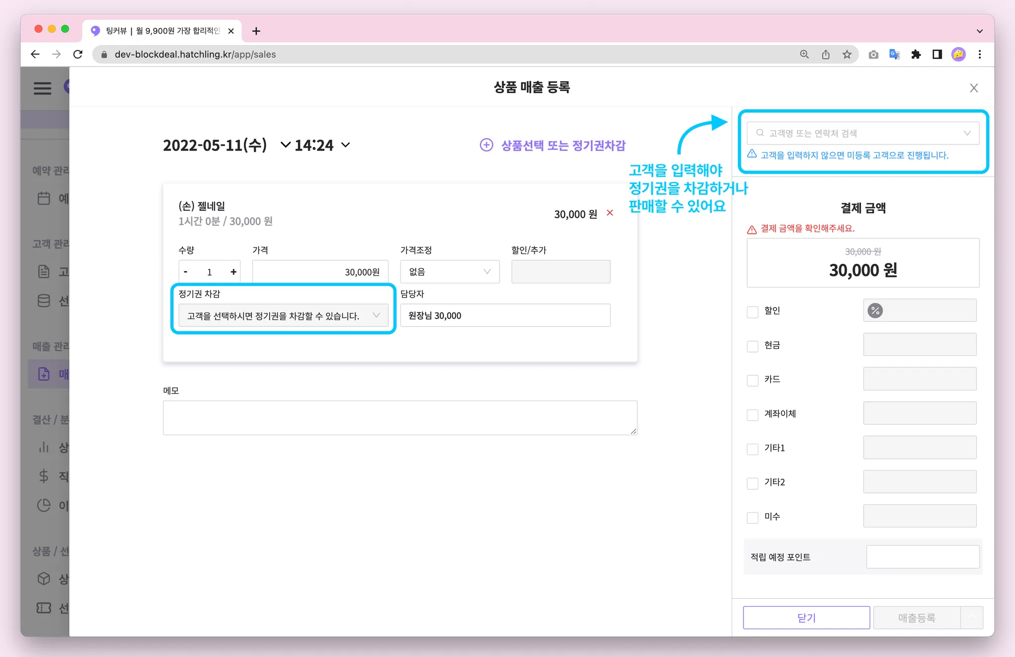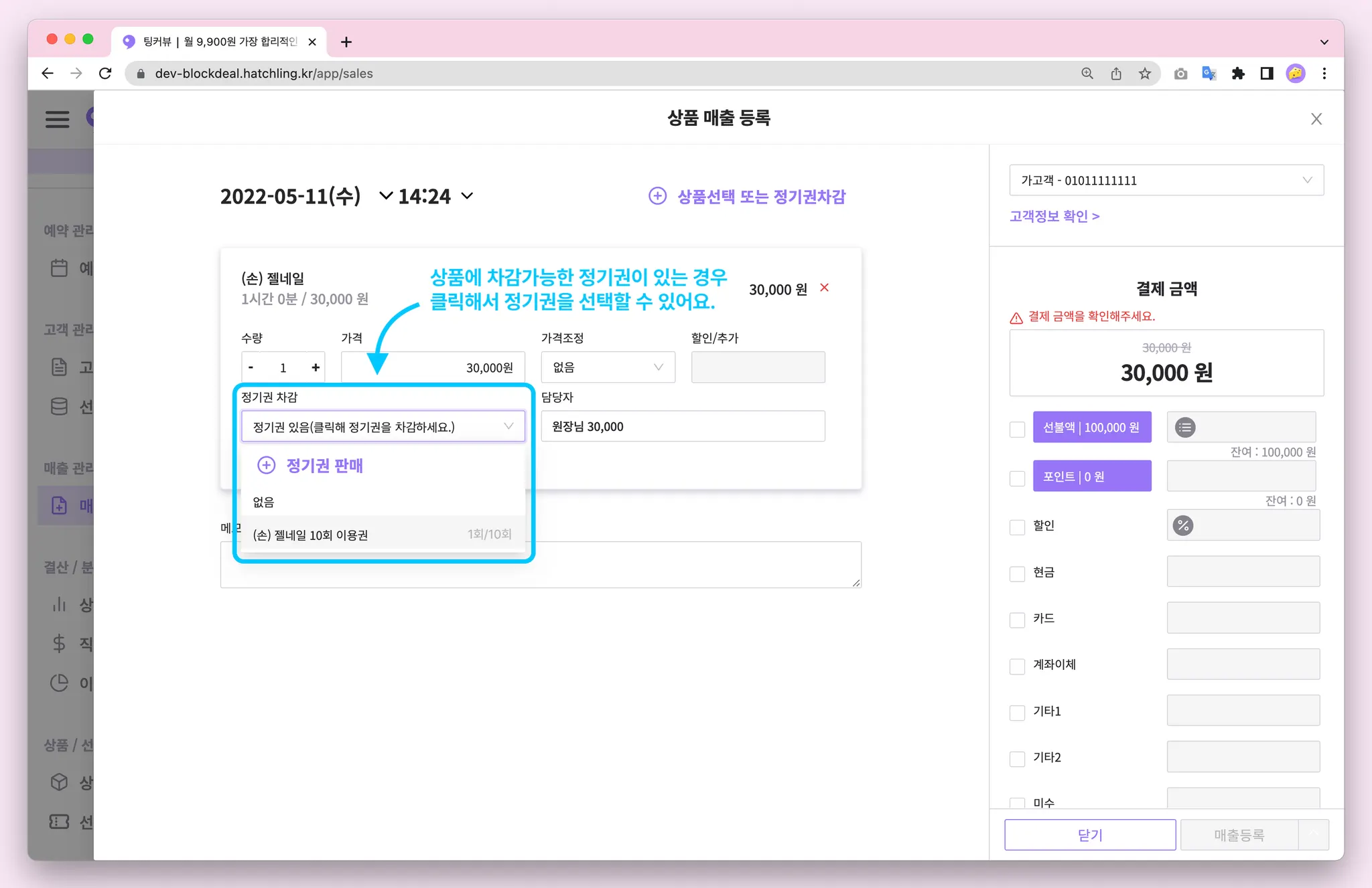 이제 매출을 등록할 때 이용가능한 정기권이 있는지 빠르게 확인할 수 있어요!