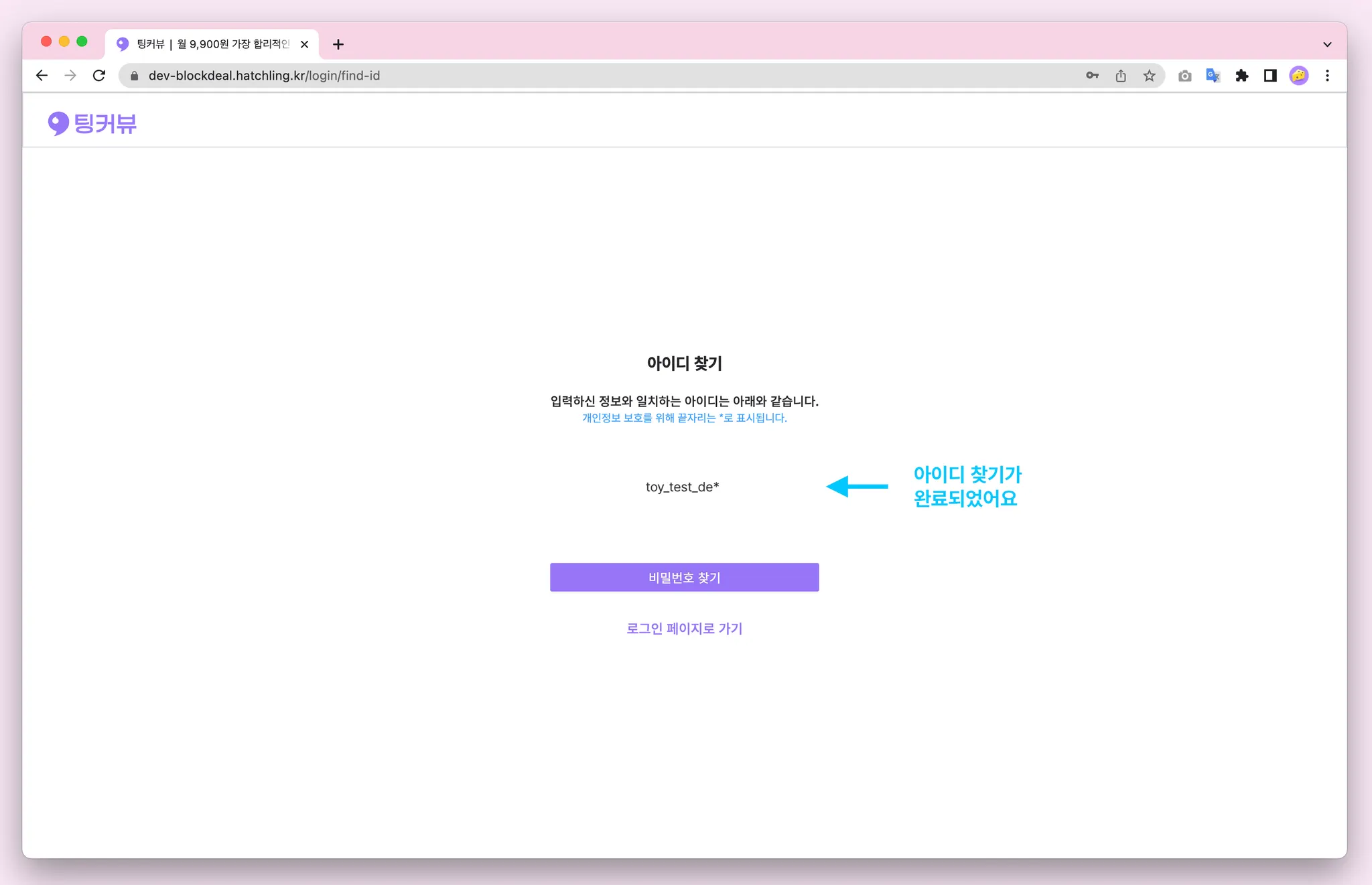 아이디를 잊으셨다면 아이디찾기 기능을 이용해보세요! 휴대폰번호 입력 후 카카오알림톡으로 발송된 인증번호 6자리를 입력해주세요! 아이디 찾기 완료~! (개인정보 보호를 위해 아이디 끝자리는 *로 표시됩니다)