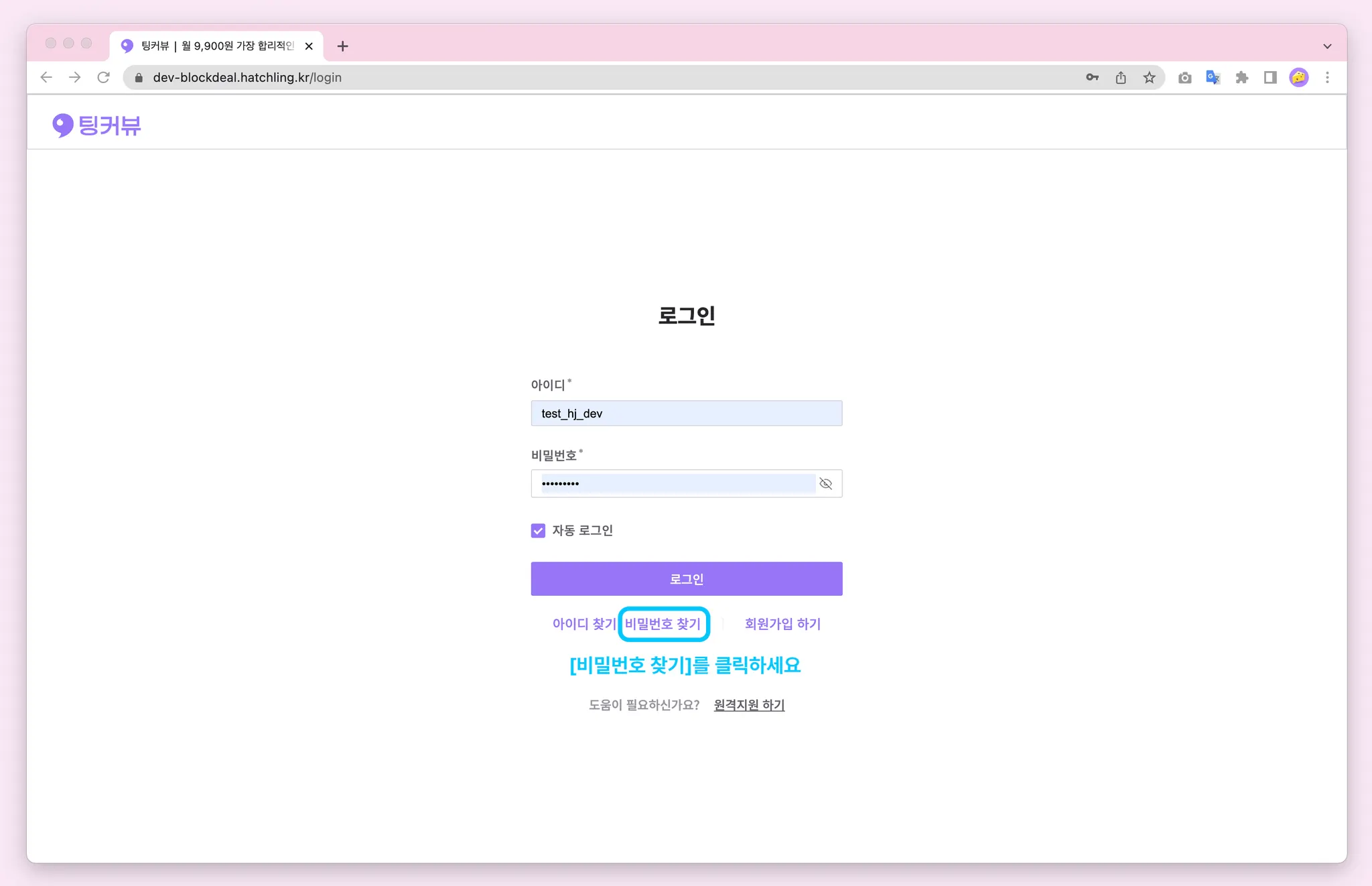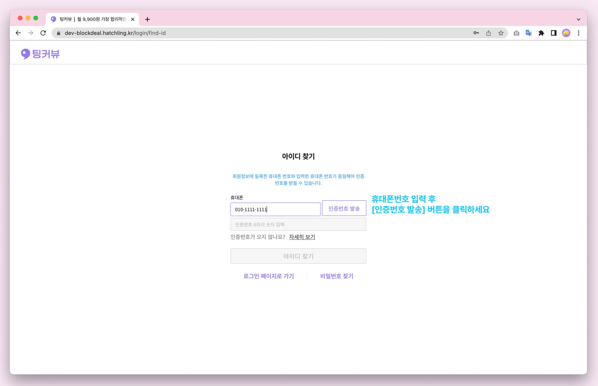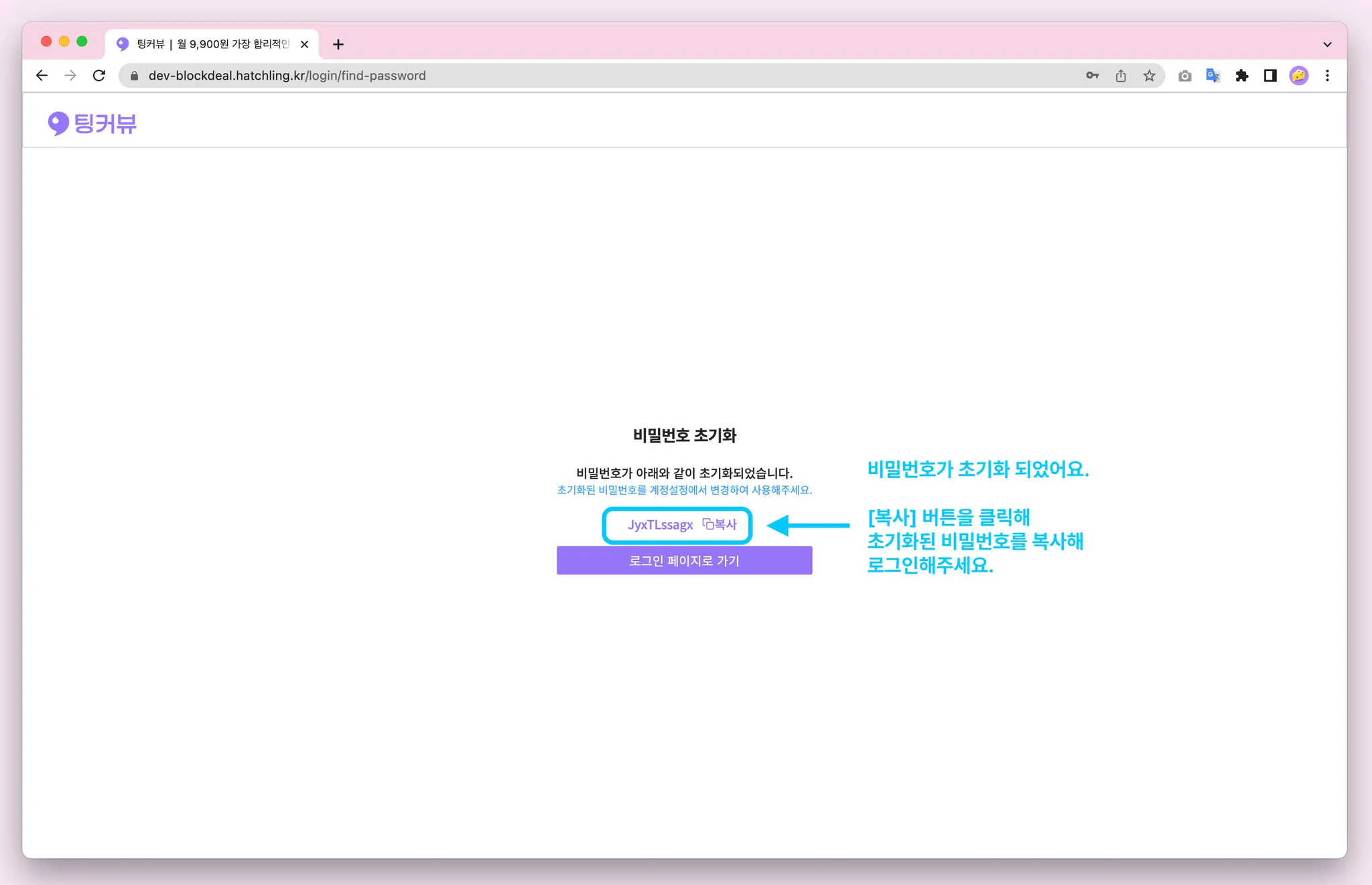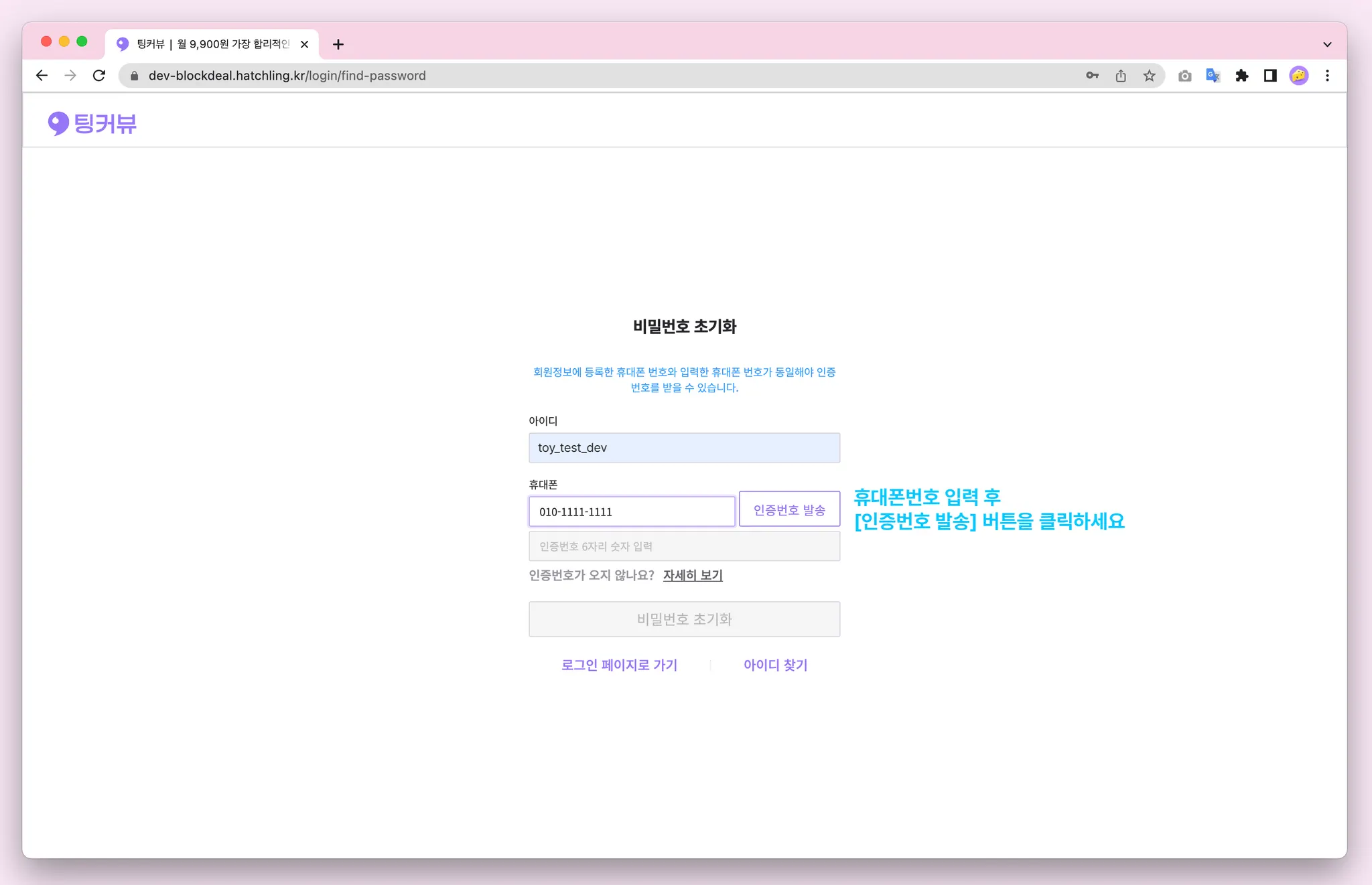 비밀번호를 잊으셨다면 비밀번호 찾기 기능을 이용해보세요! 아이디, 휴대폰번호 입력 후 카카오알림톡으로 발송된 인증번호 6자리를 입력해주세요! 비밀번호 초기화 완료~! 초기화된 비밀번호를 복사해 로그인해보세요
