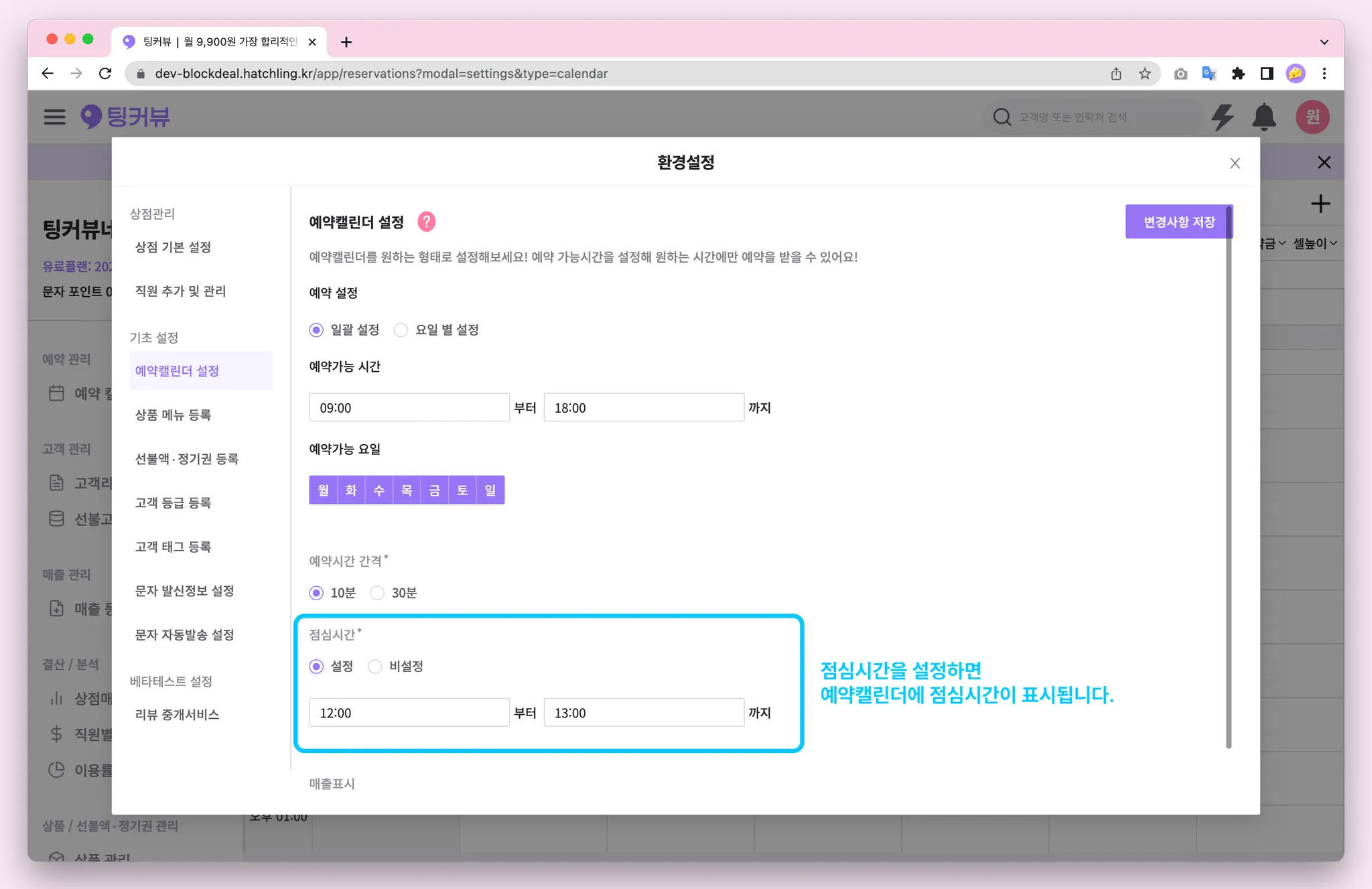 1-12. 예약가능 시간 외 시간, 점심시간 ui 변경