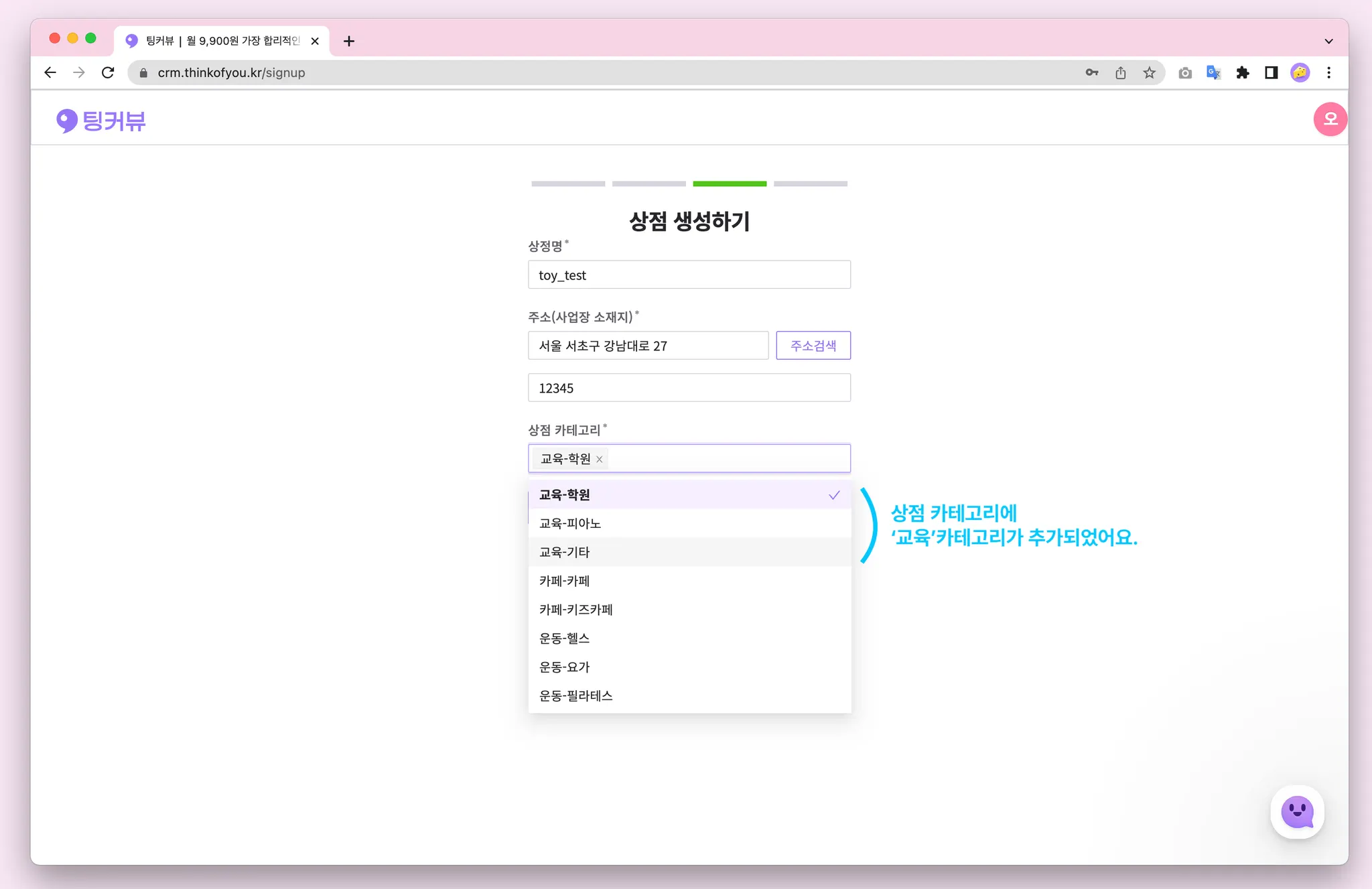 회원가입 시 선택가능한 업종에 ‘교육'카테고리가 추가되었어요.