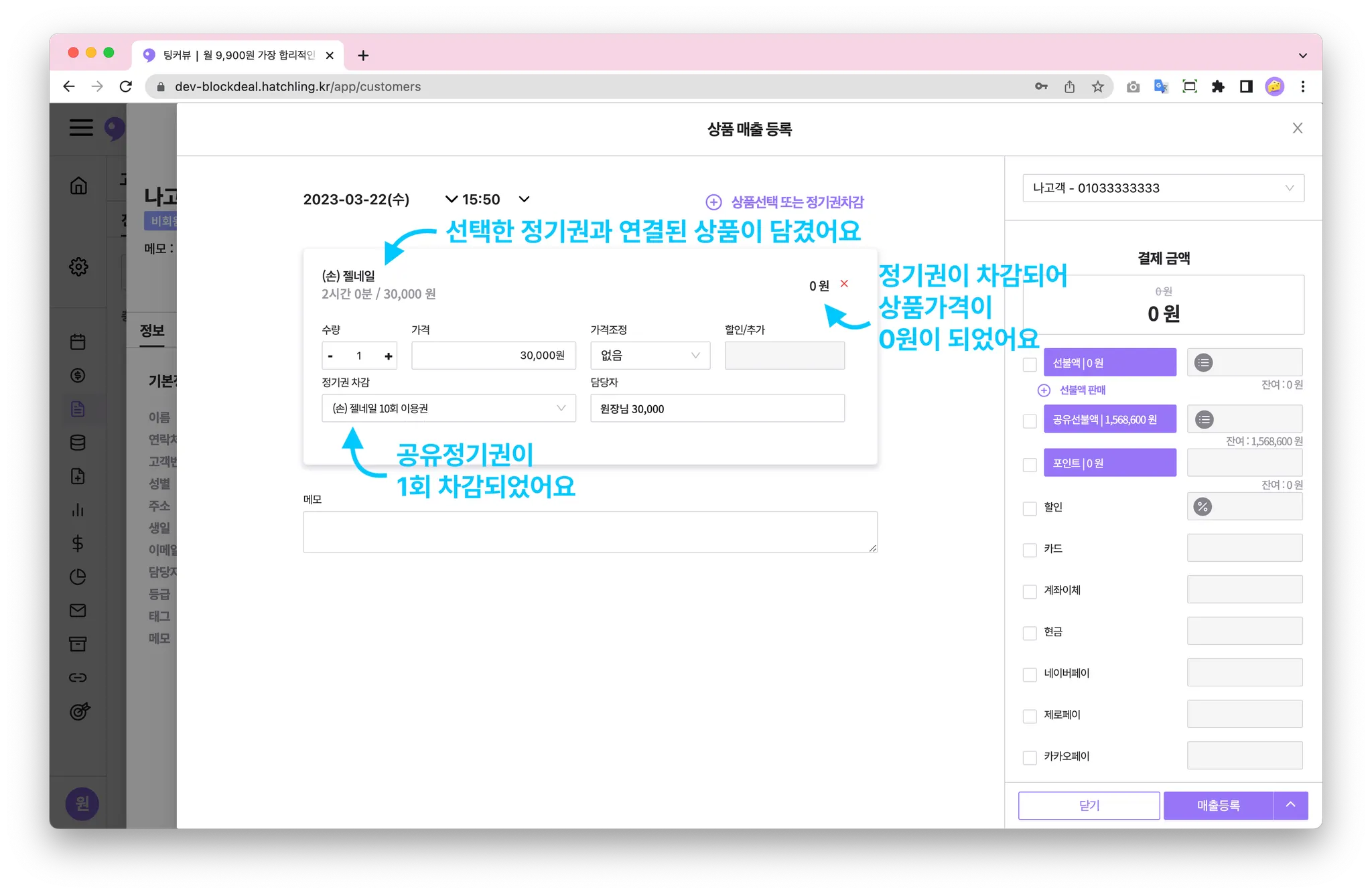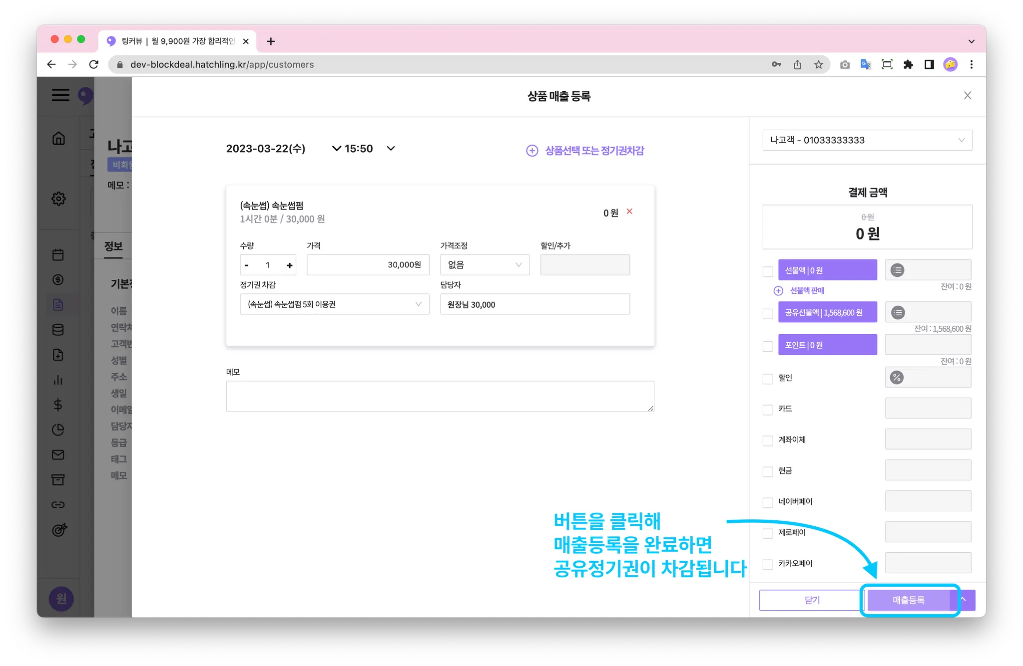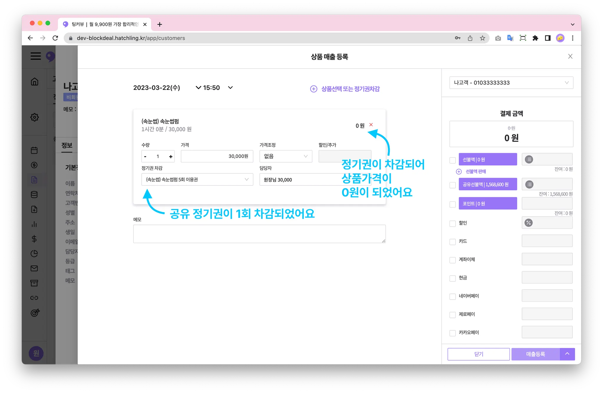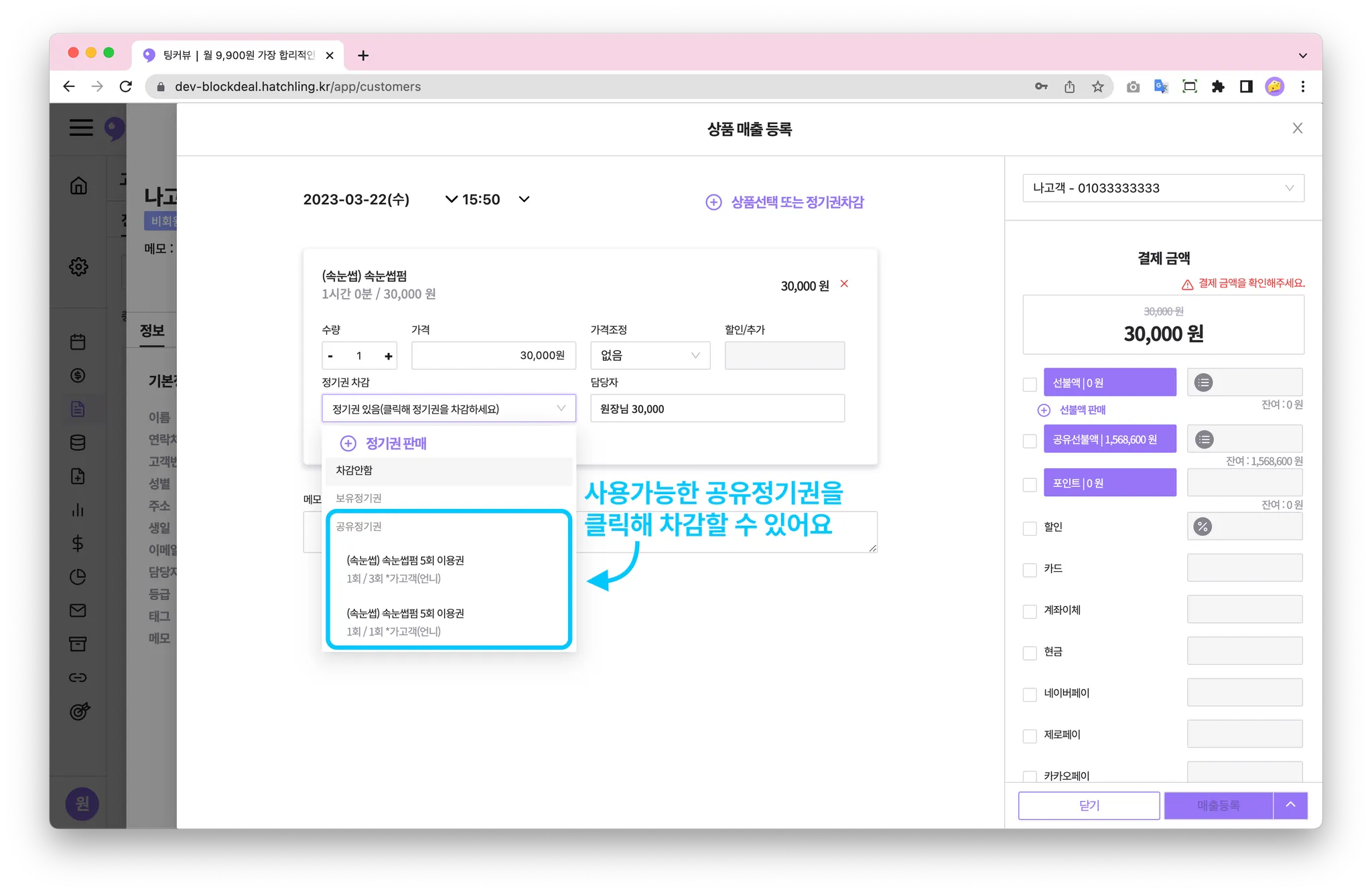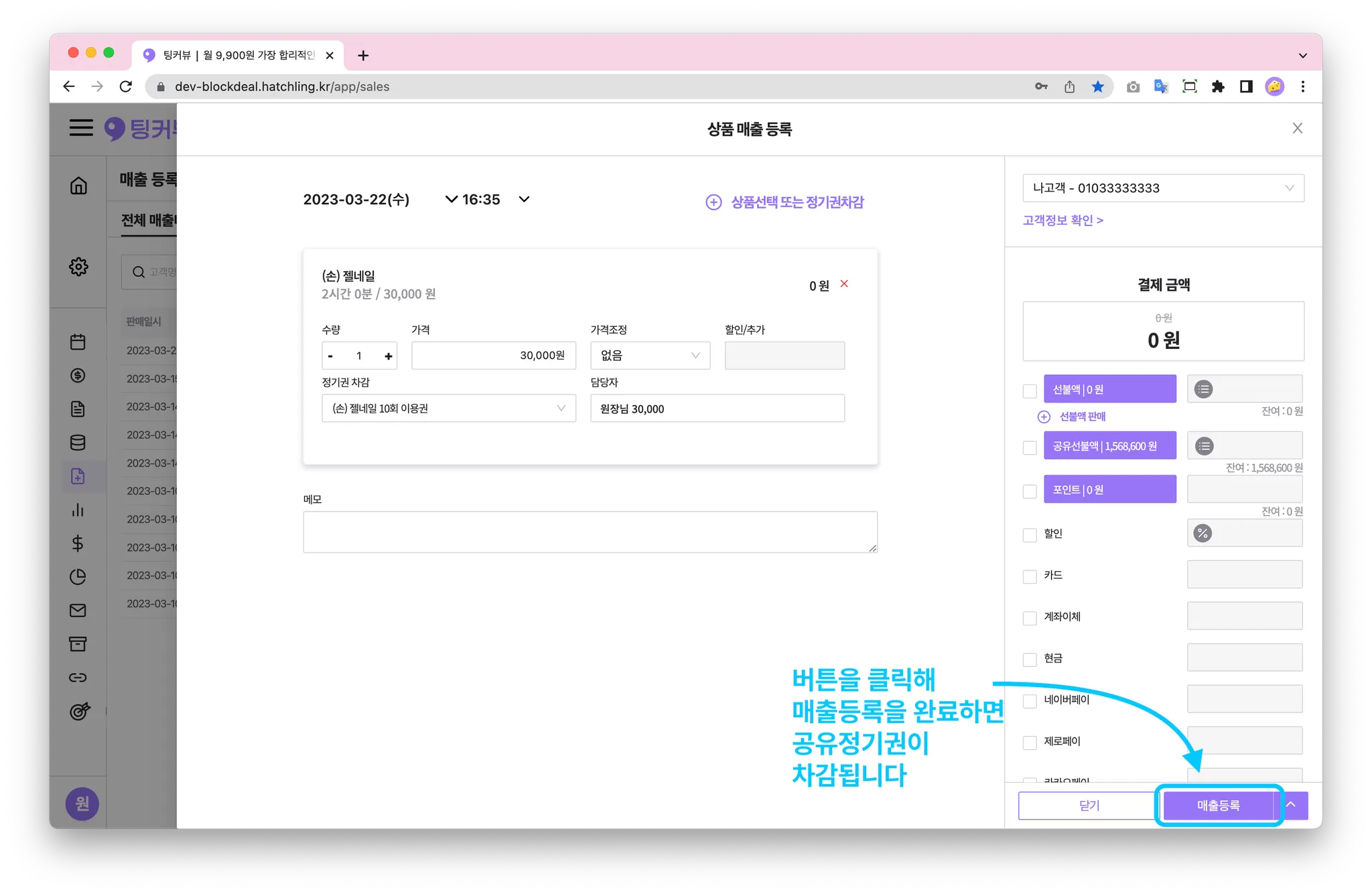 매출등록을 완료하면 공유정기권 차감 완료-!