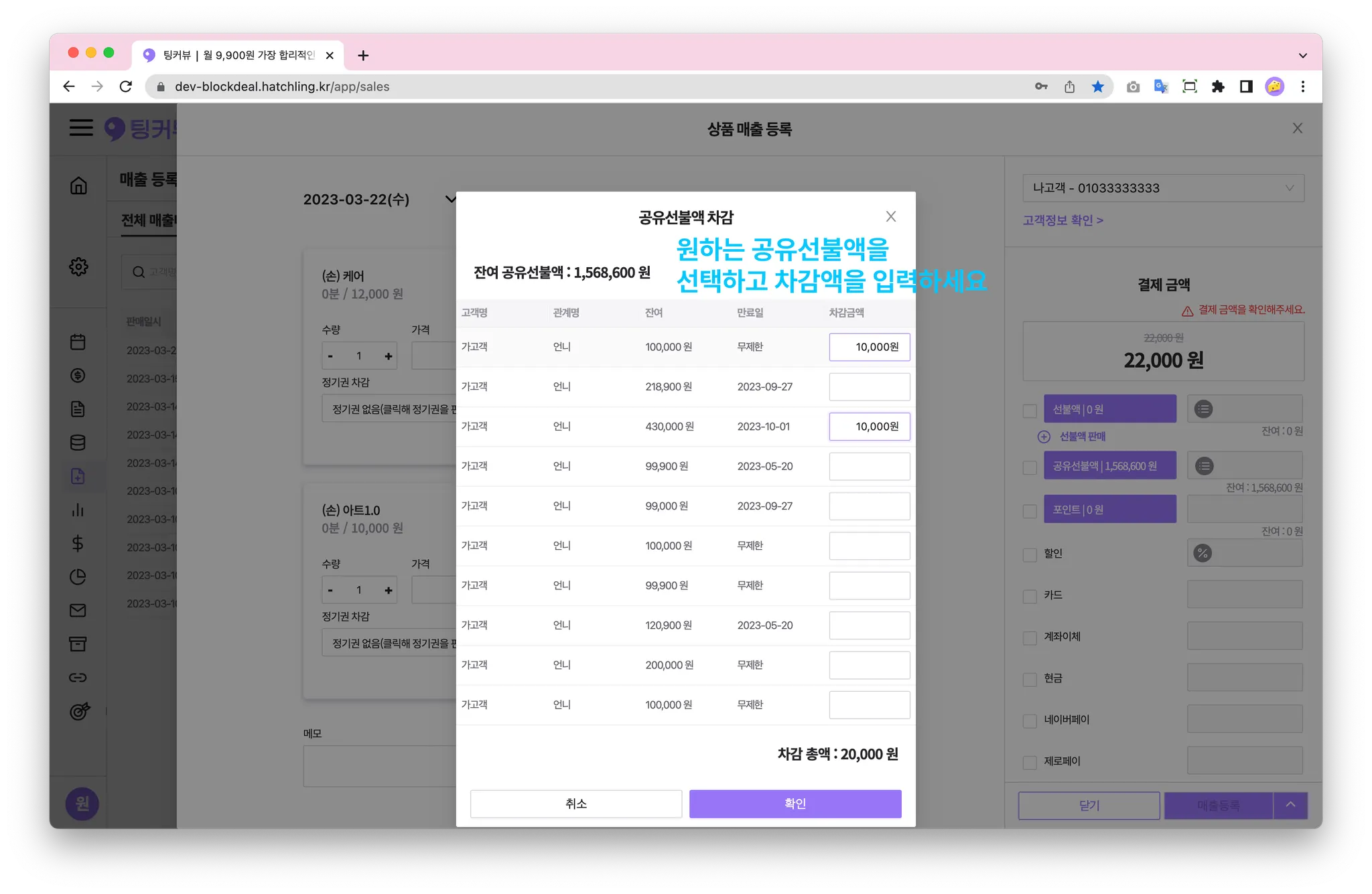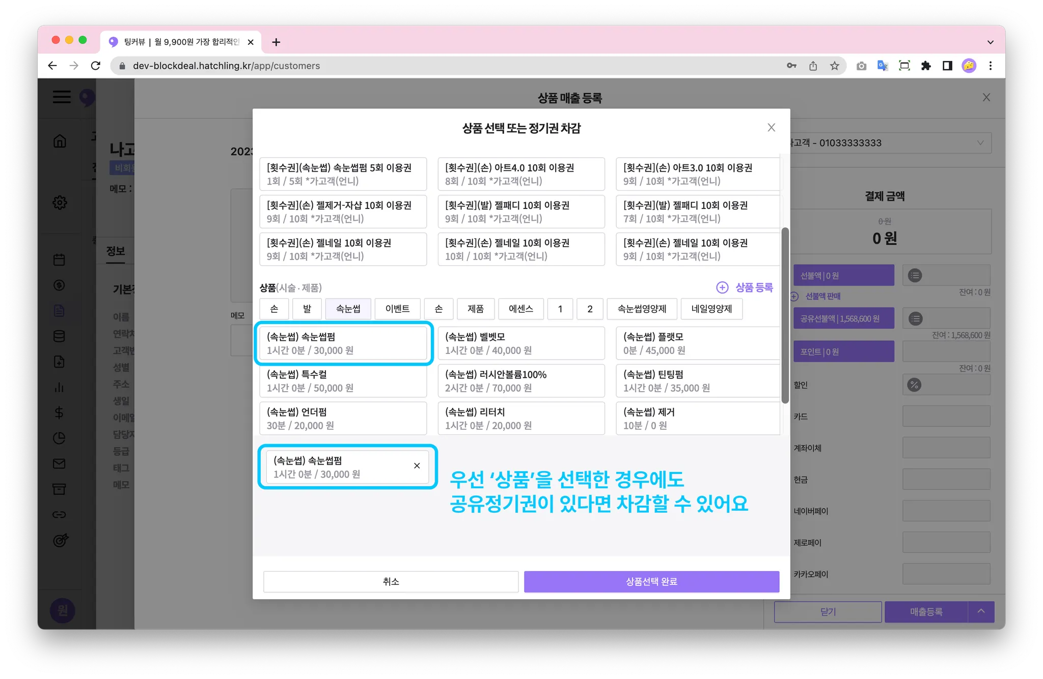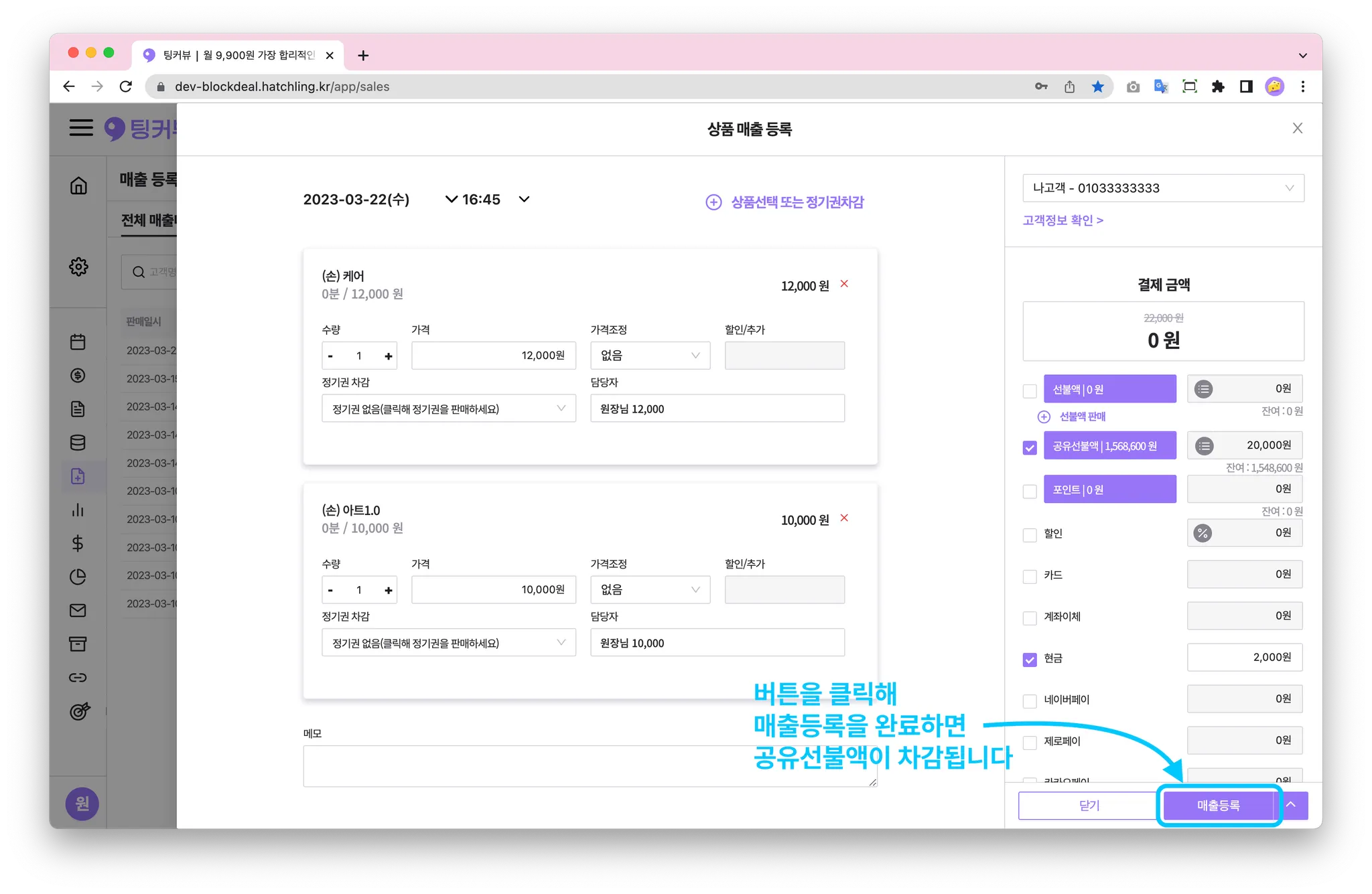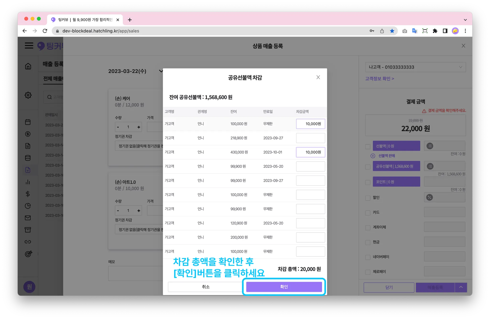 매출등록을 완료하면 공유정기권 차감 완료-!
