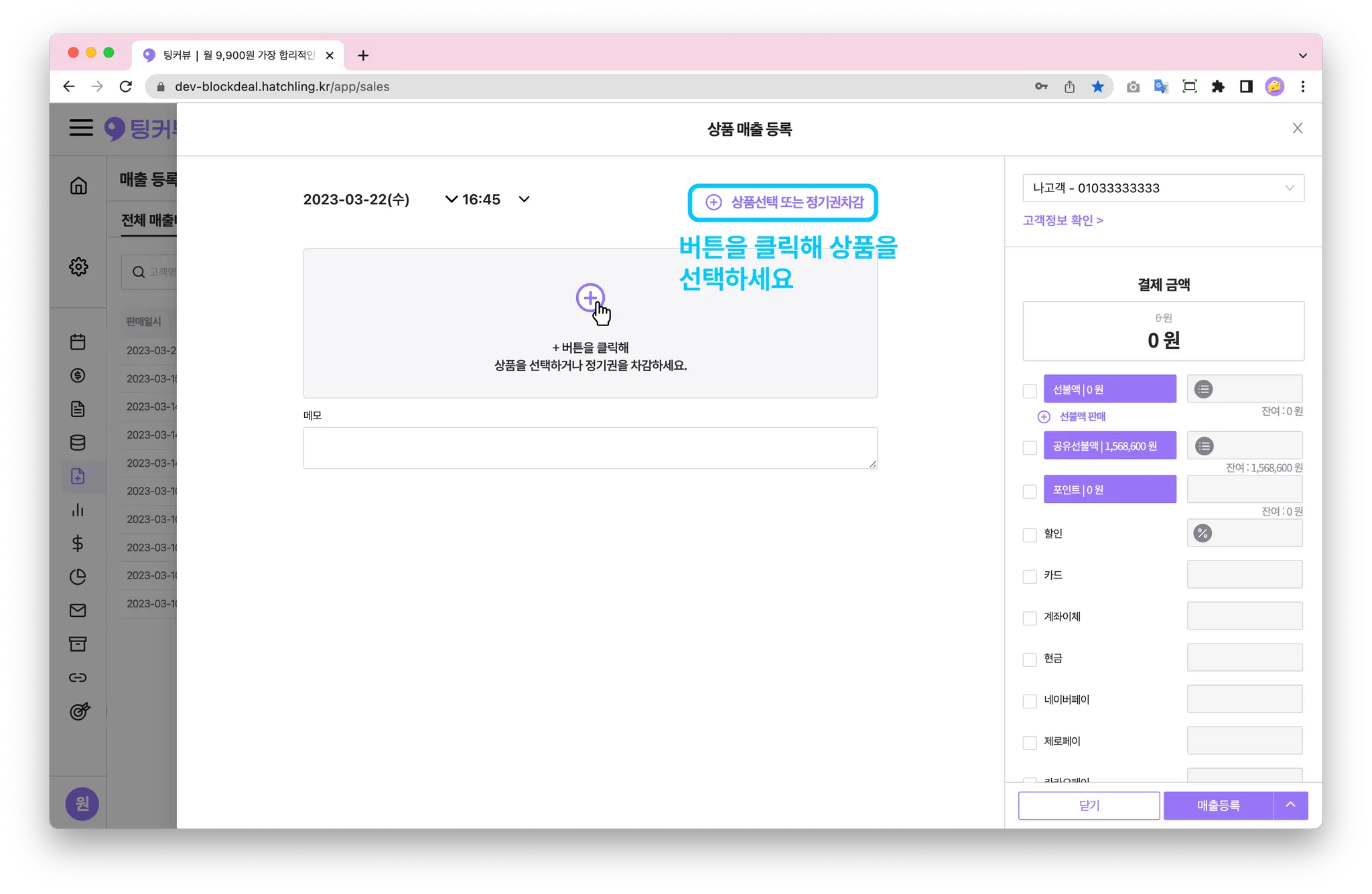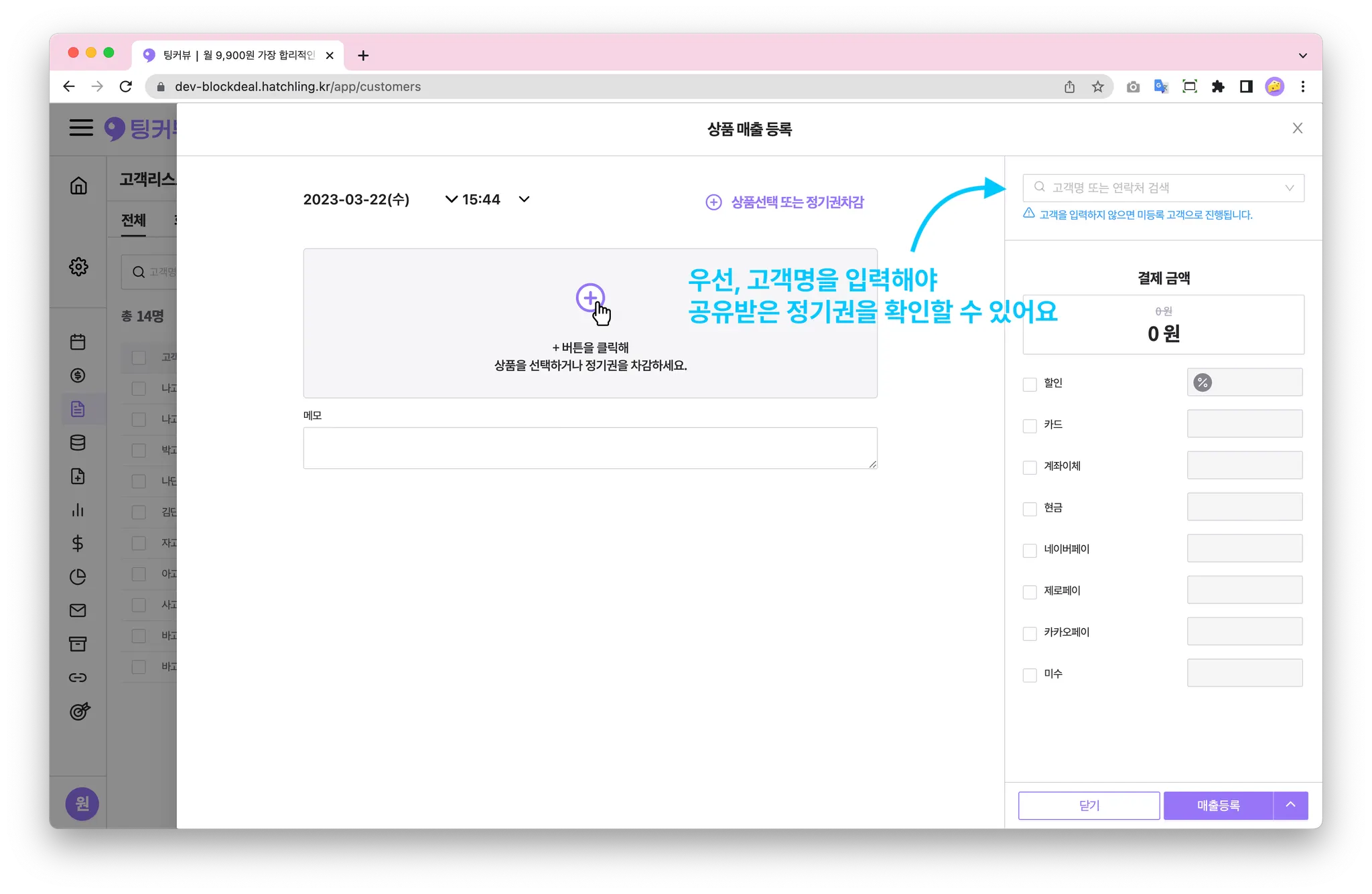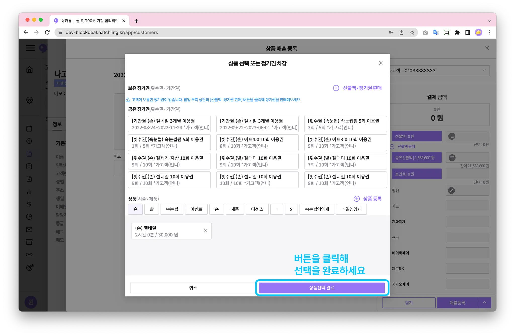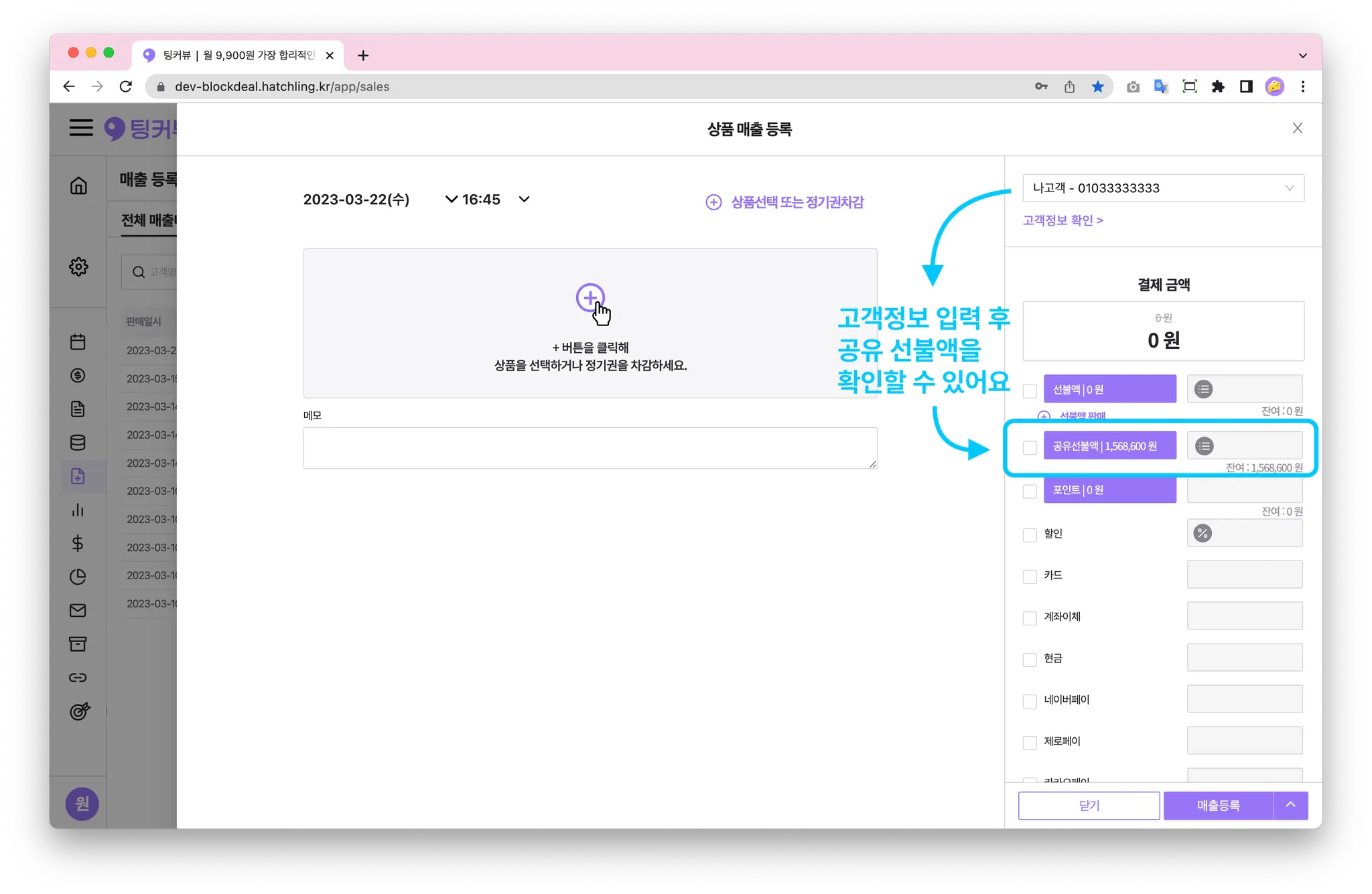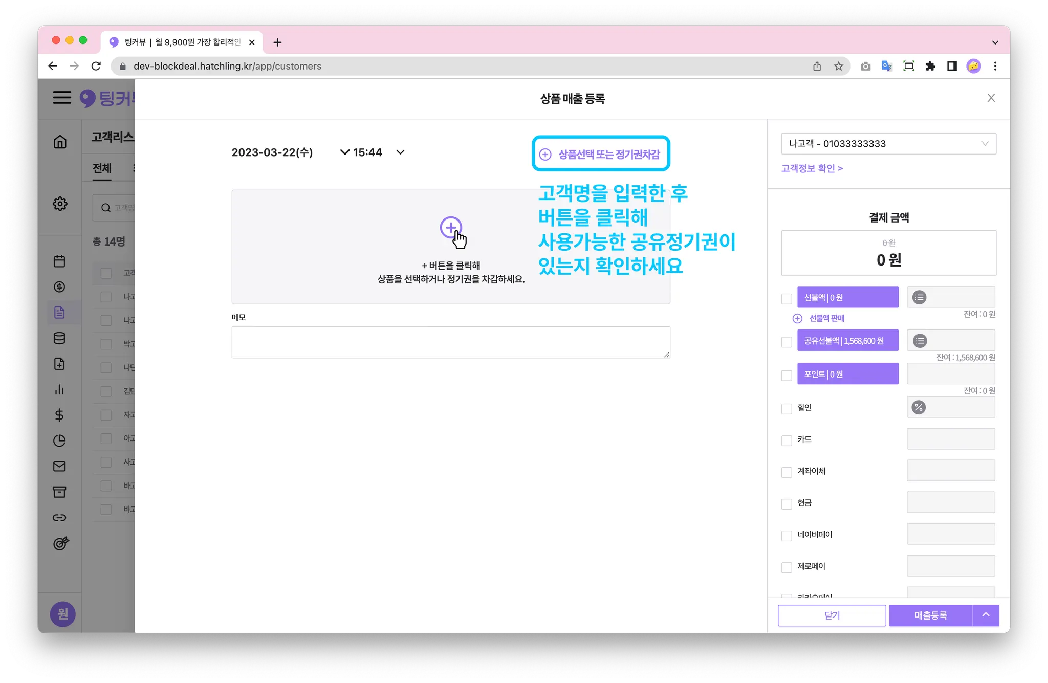 매출등록을 완료하면 공유정기권 차감 완료-!
