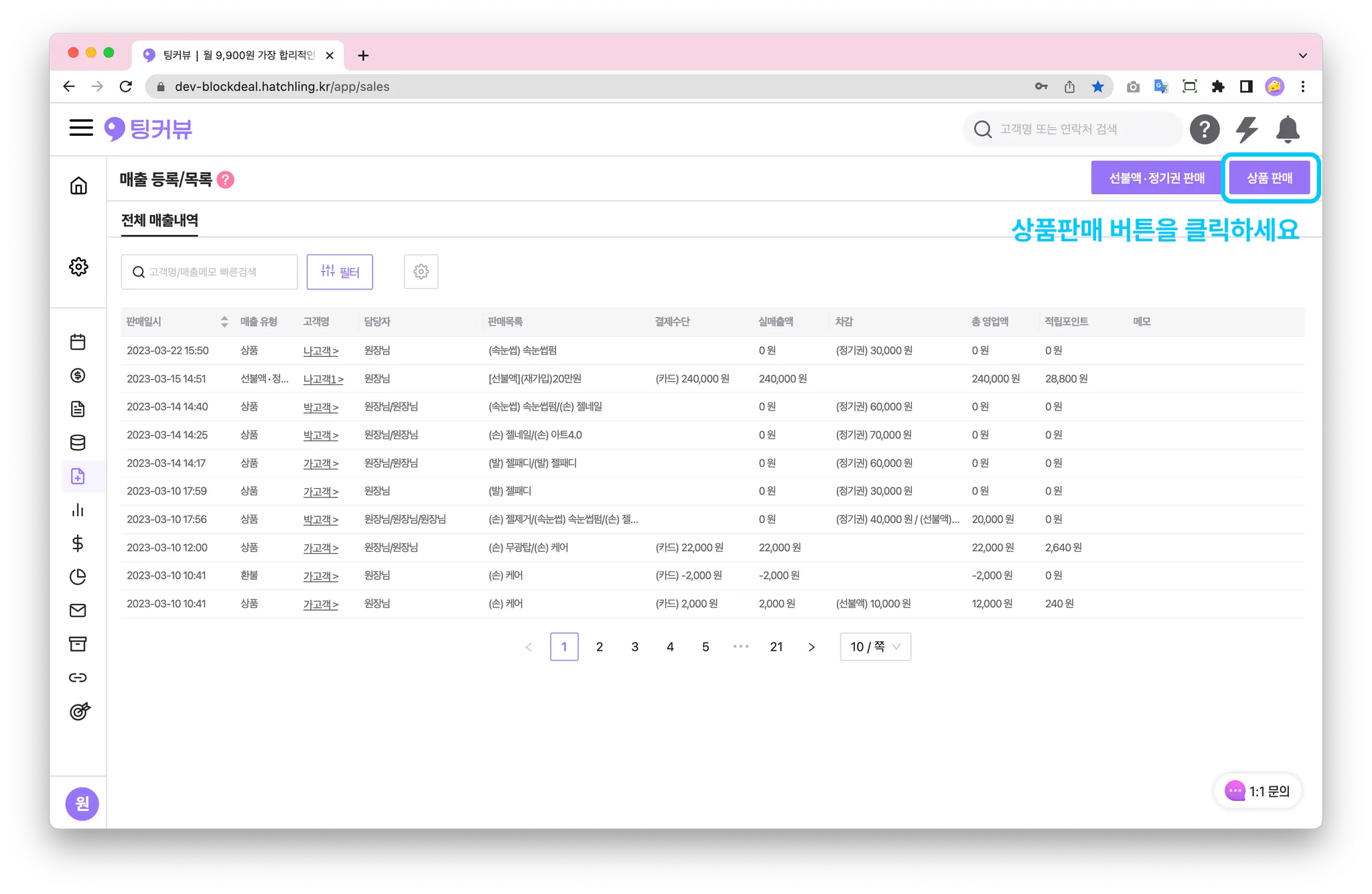 우측 상단의 [상품 판매] 버튼을 클릭하세요