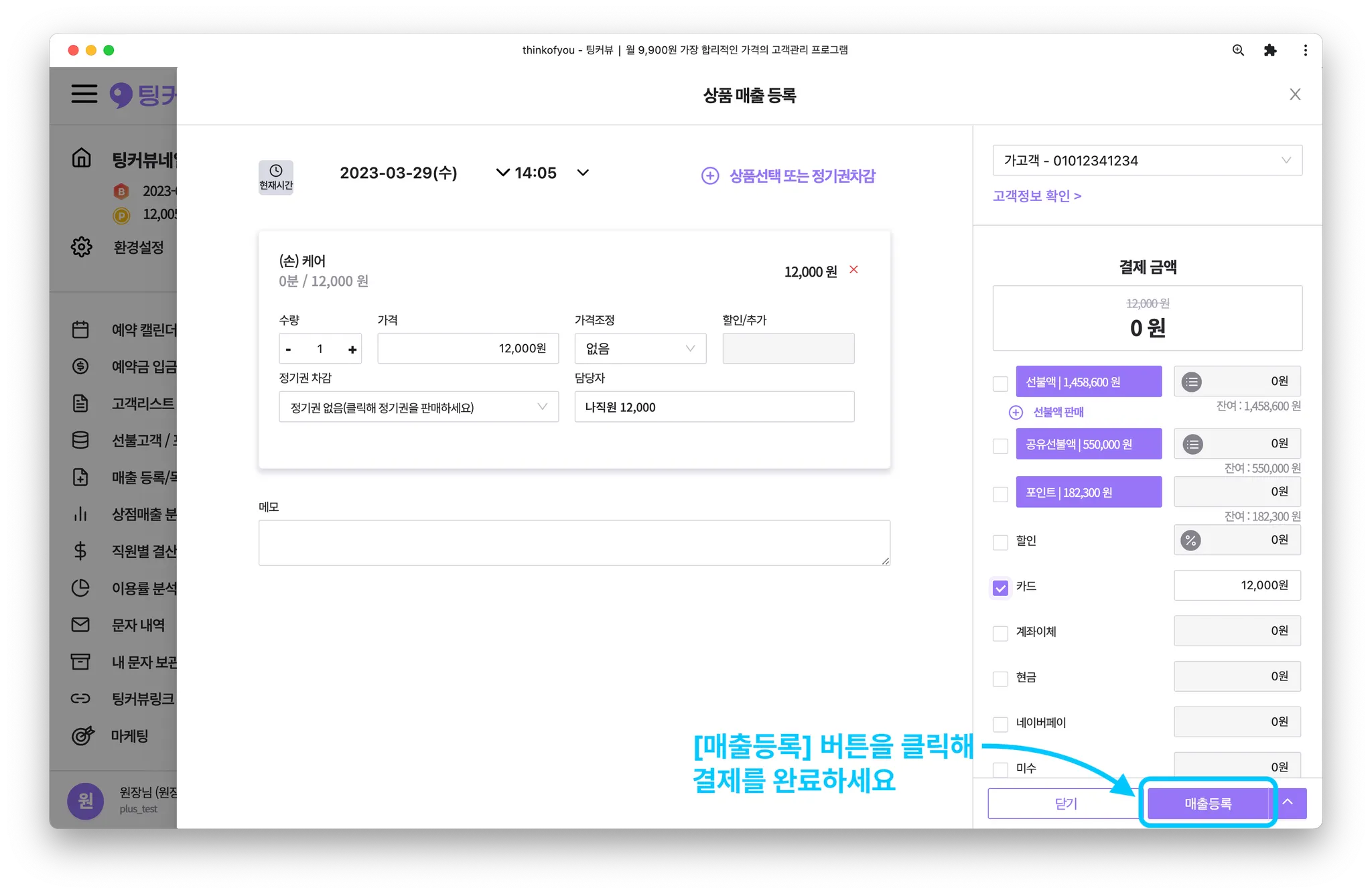 결제수단을 모두 입력했다면 매출등록을 완료해주세요!