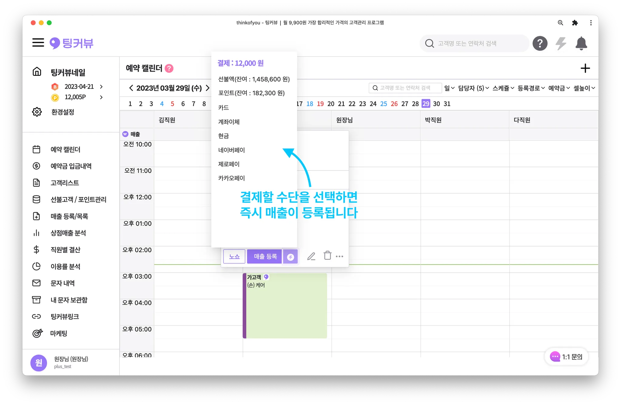 2. 캘린더에서 예약을 간편매출등록하기